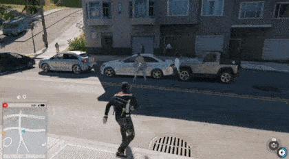 《WatchDog2》当有个NPC的车子被撞了后的有趣表现,NPC会躲上车,但另一个NPC会进行追击把人拖出来,形成一个有逻辑且连贯的整体表演。