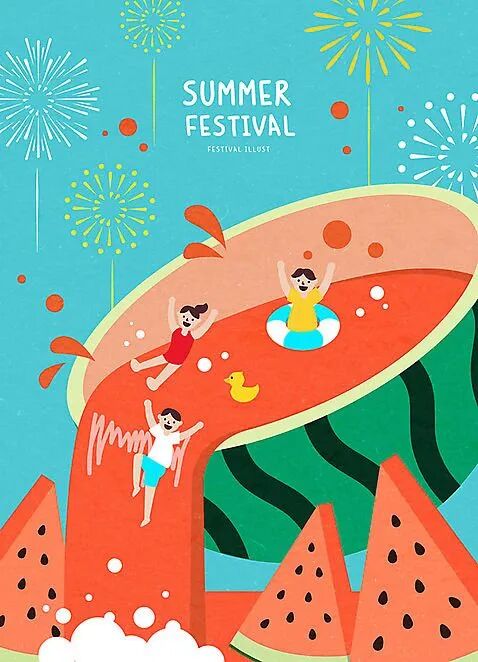 插画是一种表达生活的语言方式,可以表达出多种多样的情感。夏日元素有西瓜、风扇、冰淇淋......