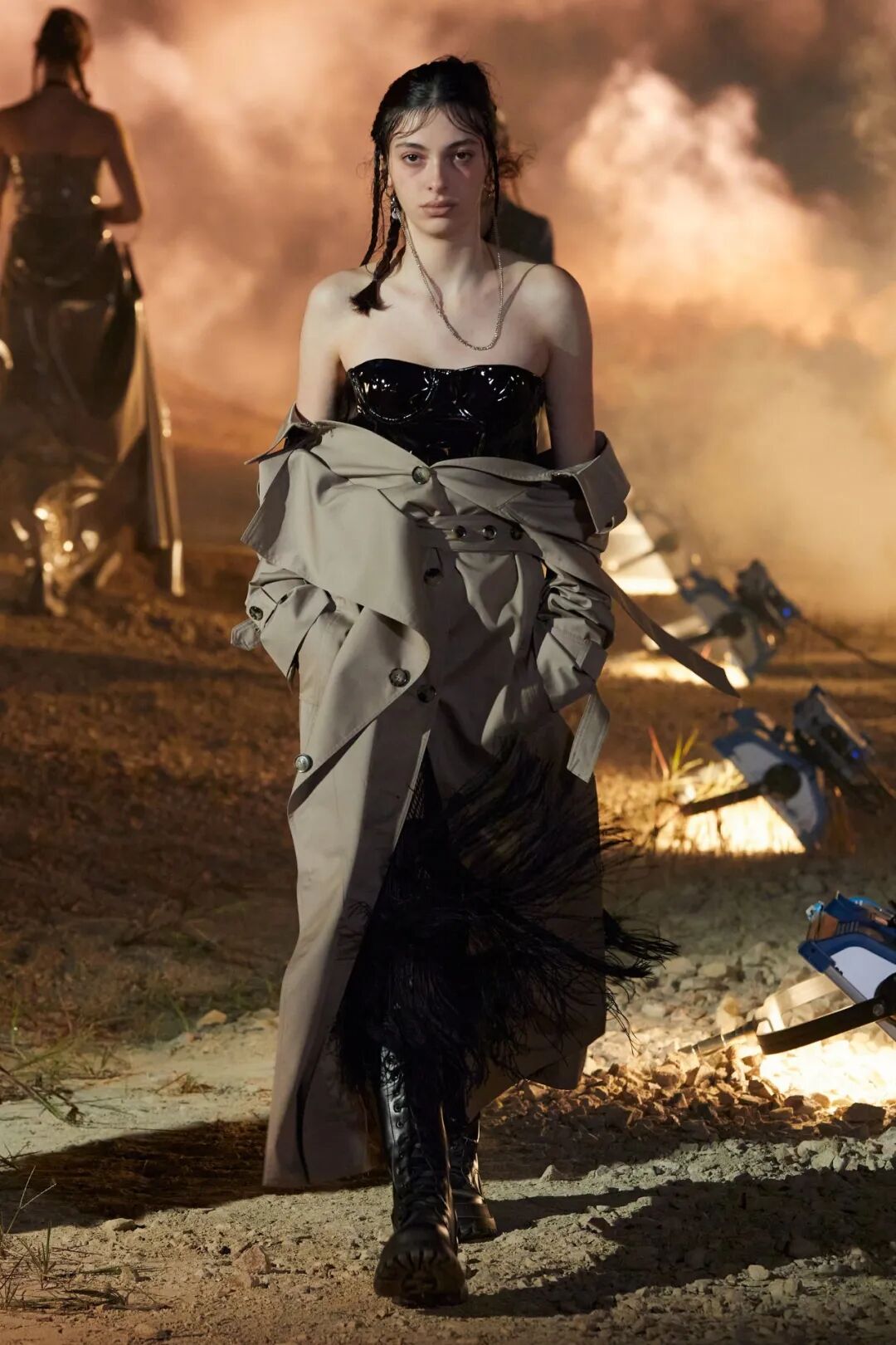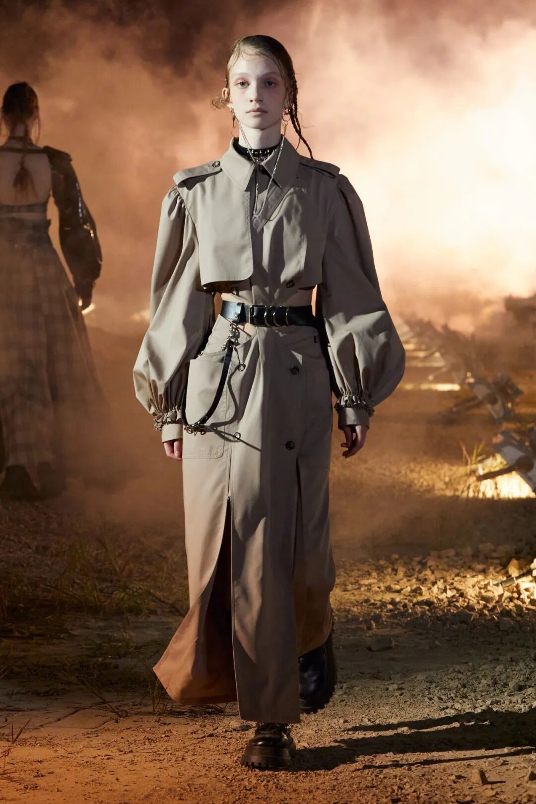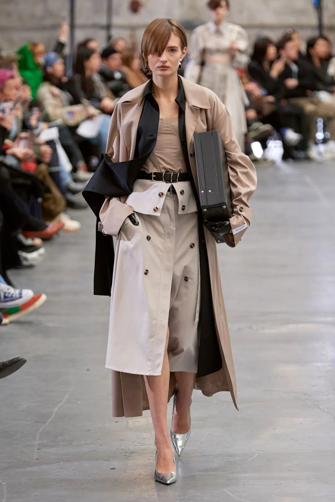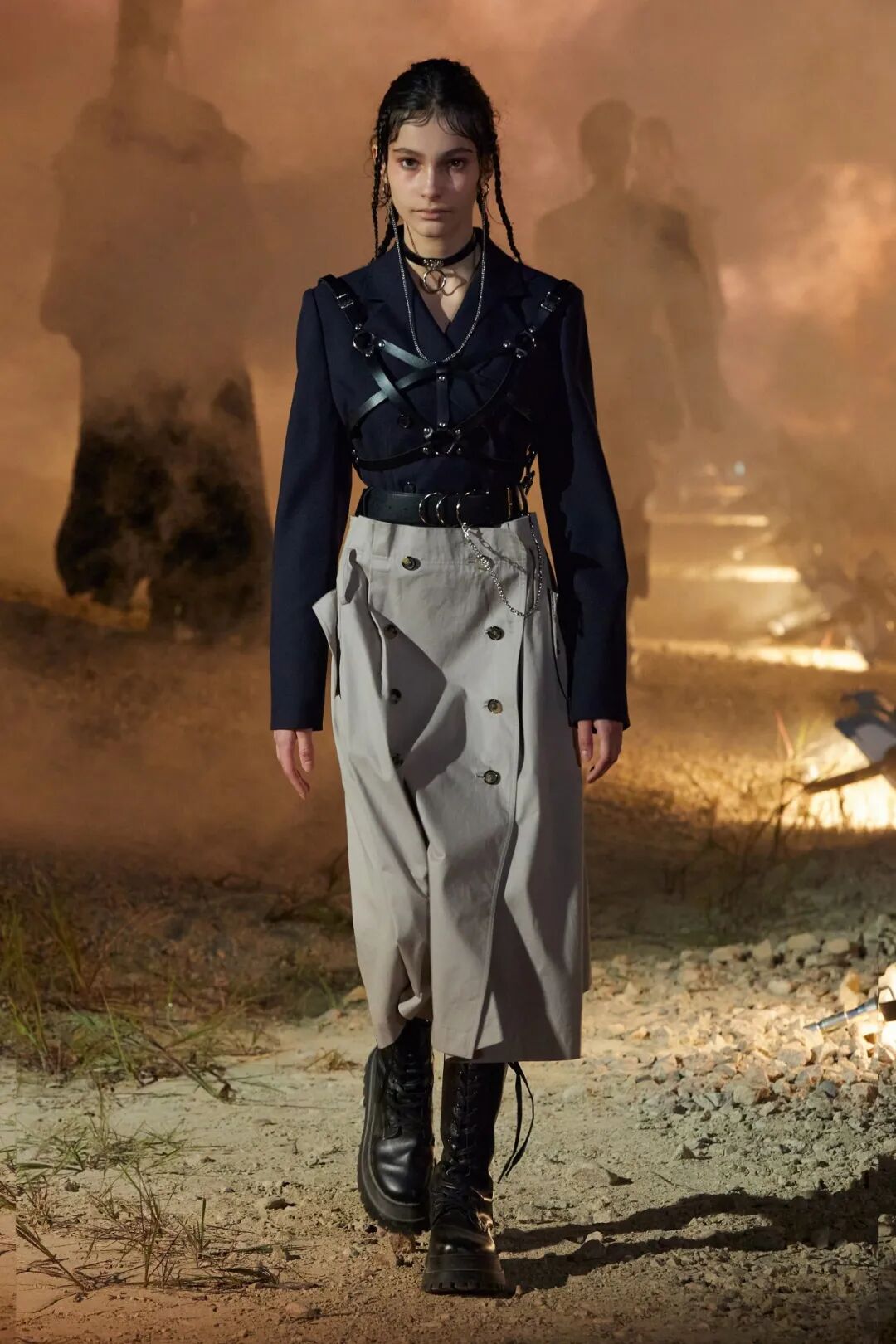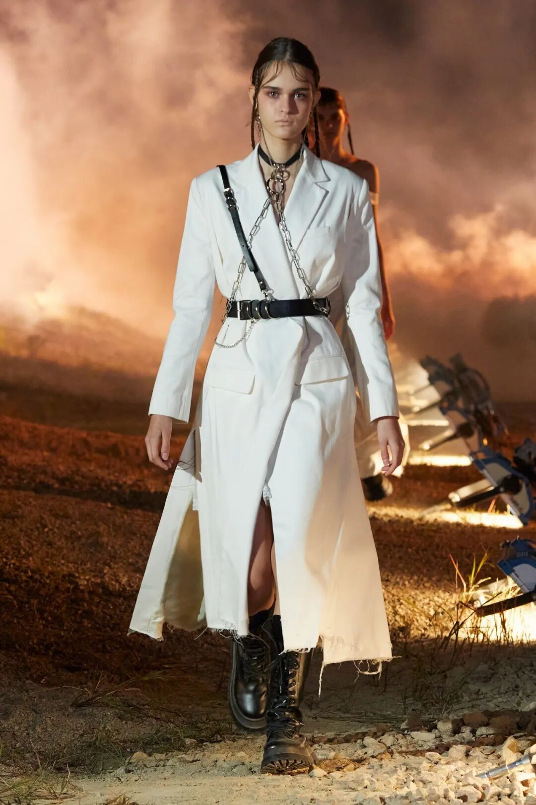 叠穿扭曲的风衣和多层的裤腰,延续了Rokh的品牌基因,对于解构和面料材质对比的熟练运用。往季中常见的金属部件和多条装饰的腰带,在本季依然在整个系列的服装展示中占据着大众的视线。