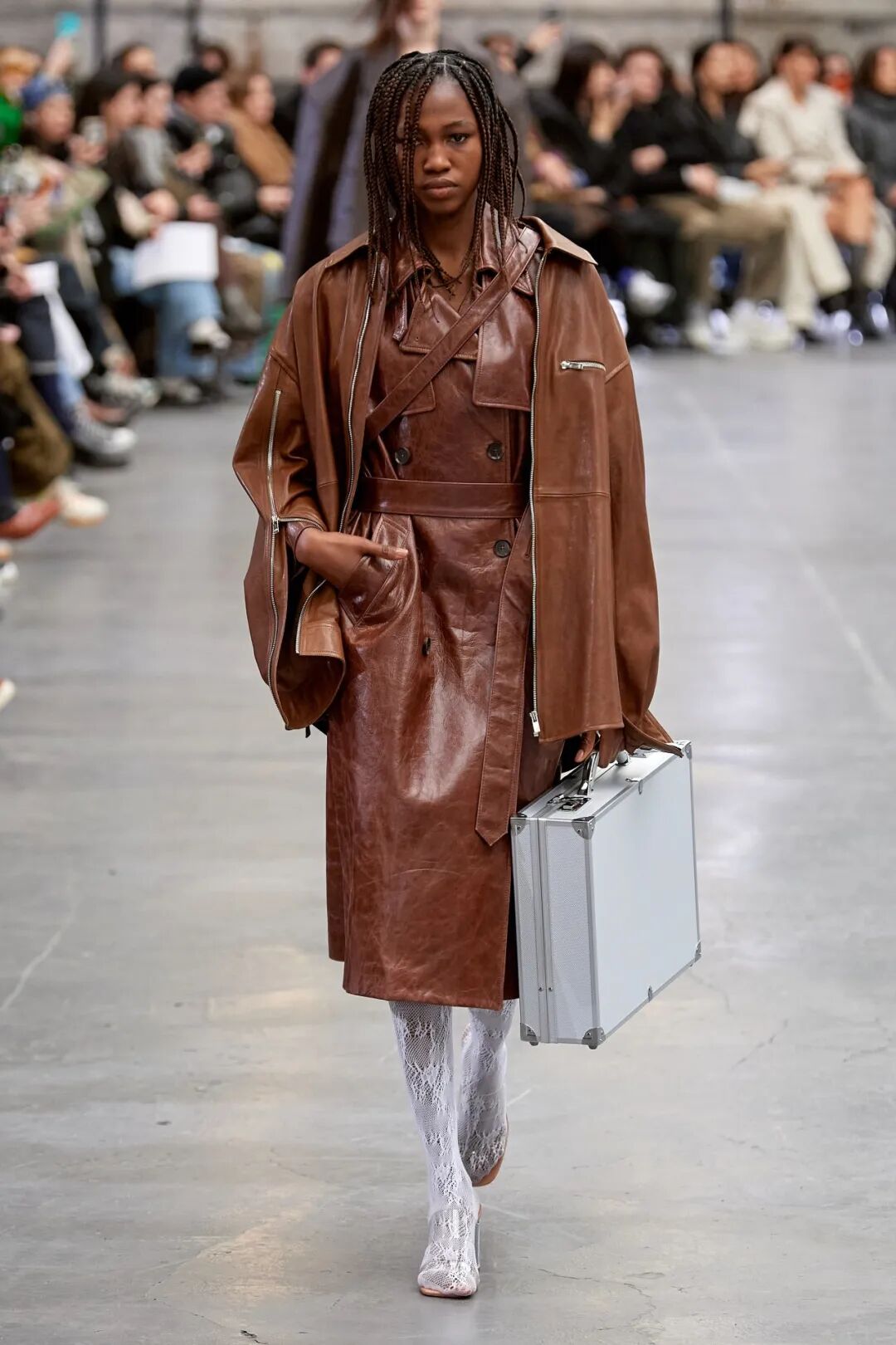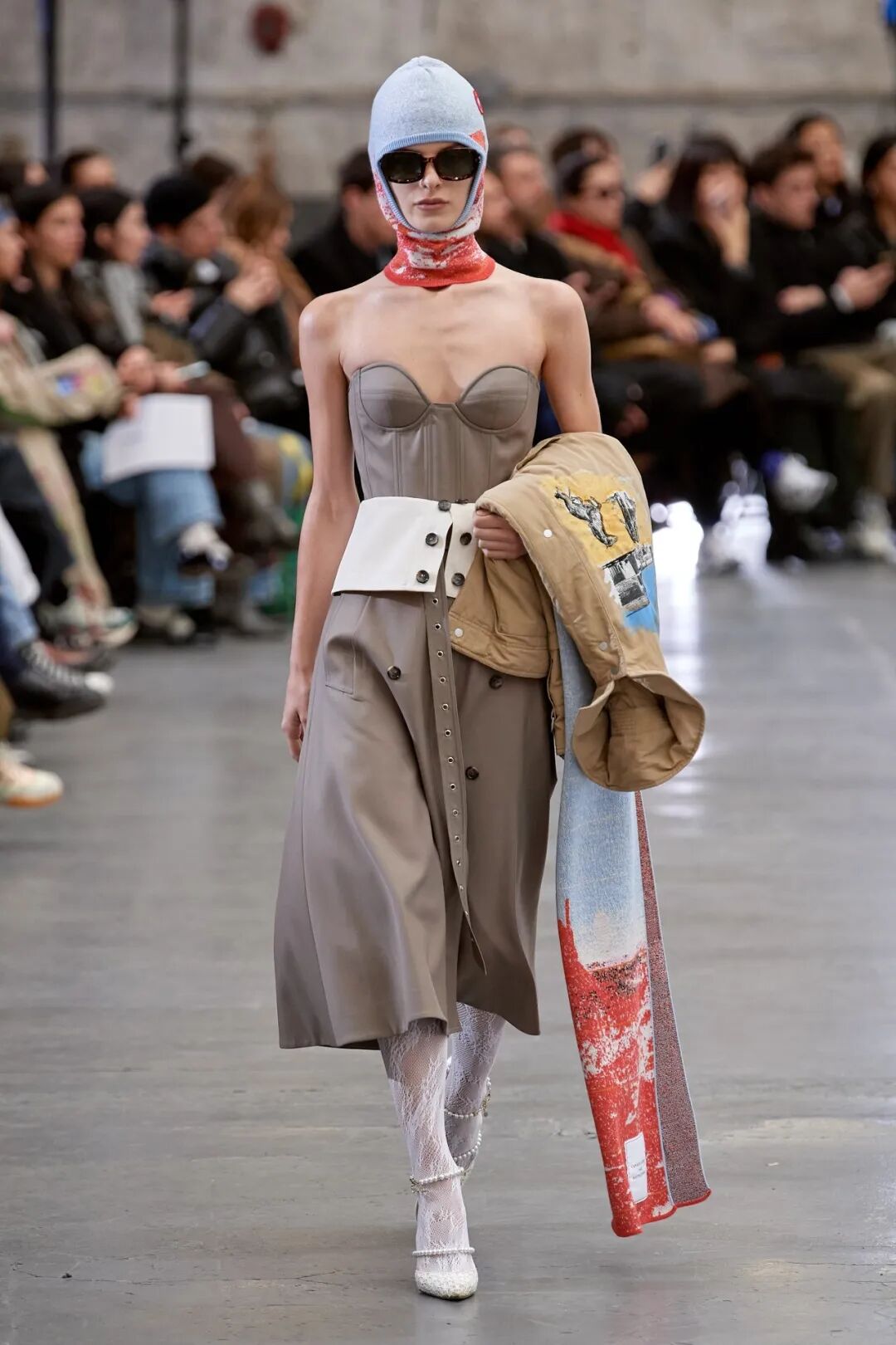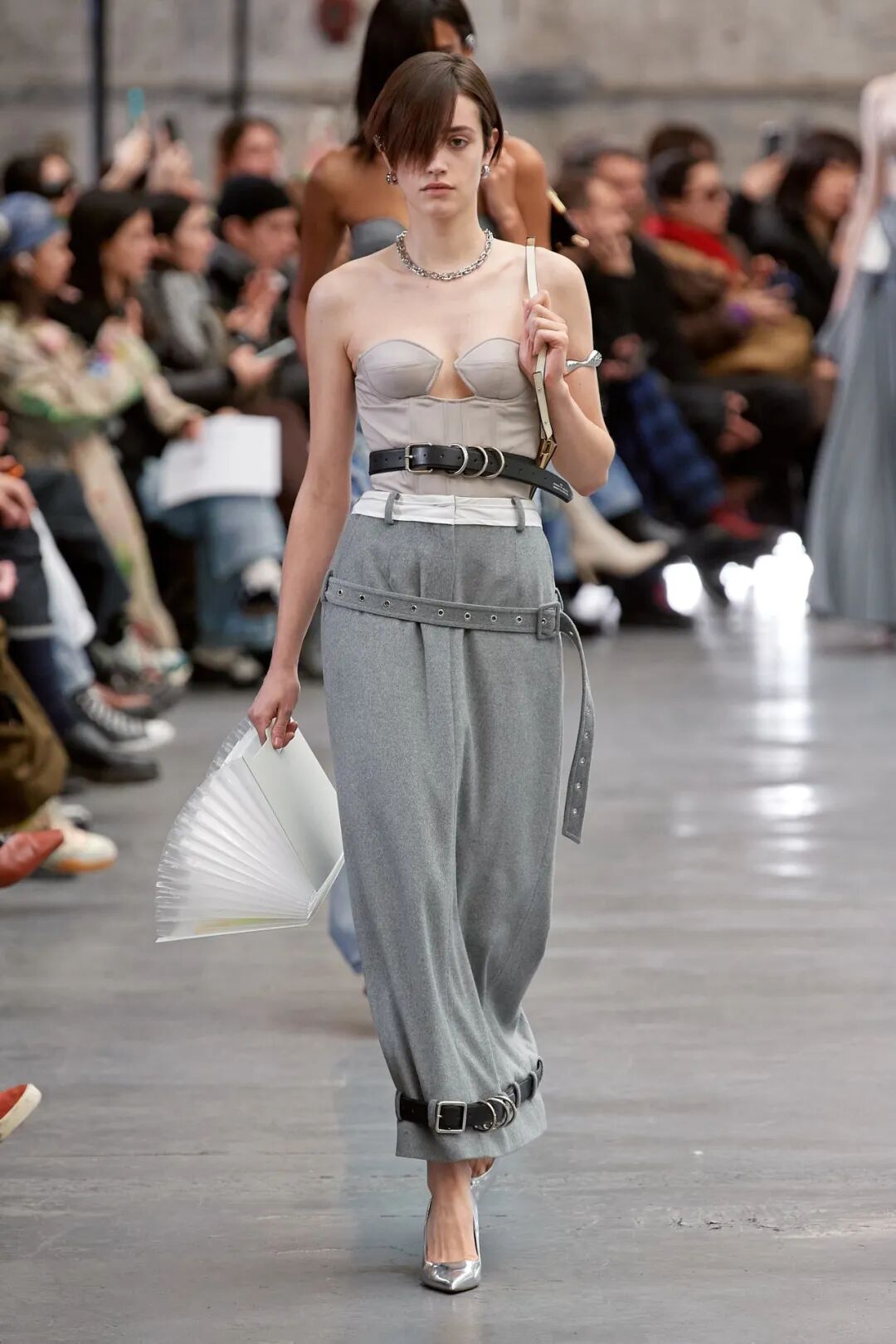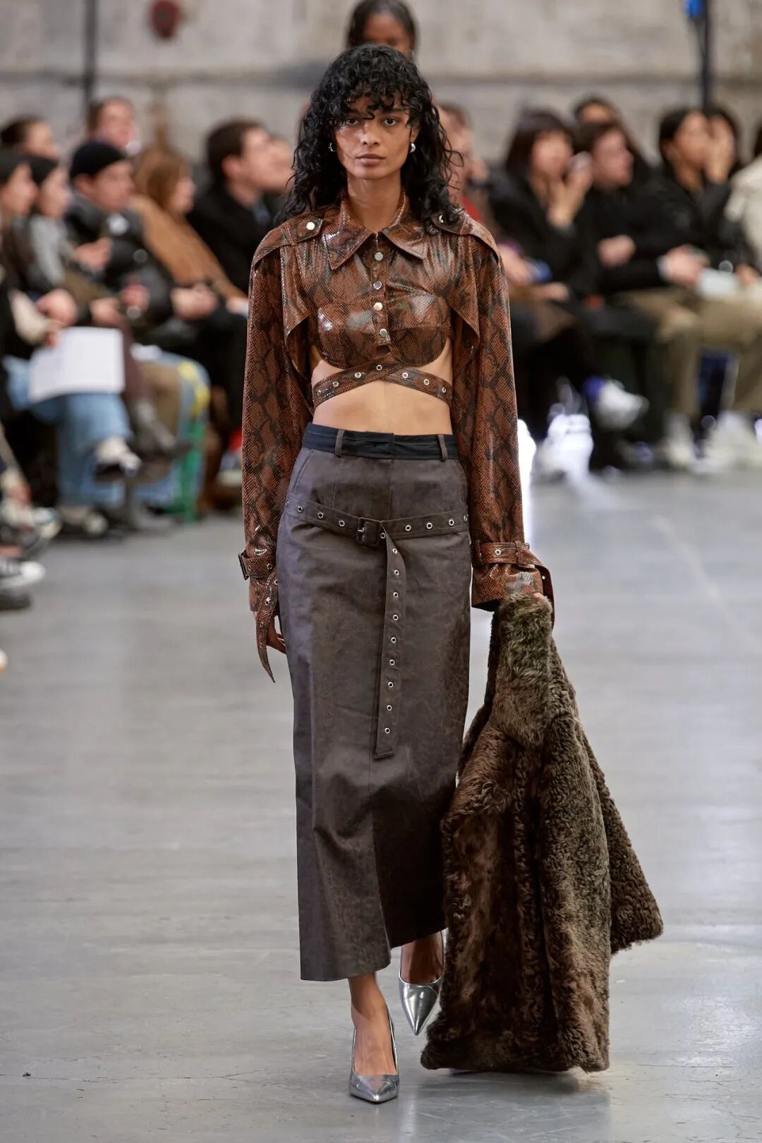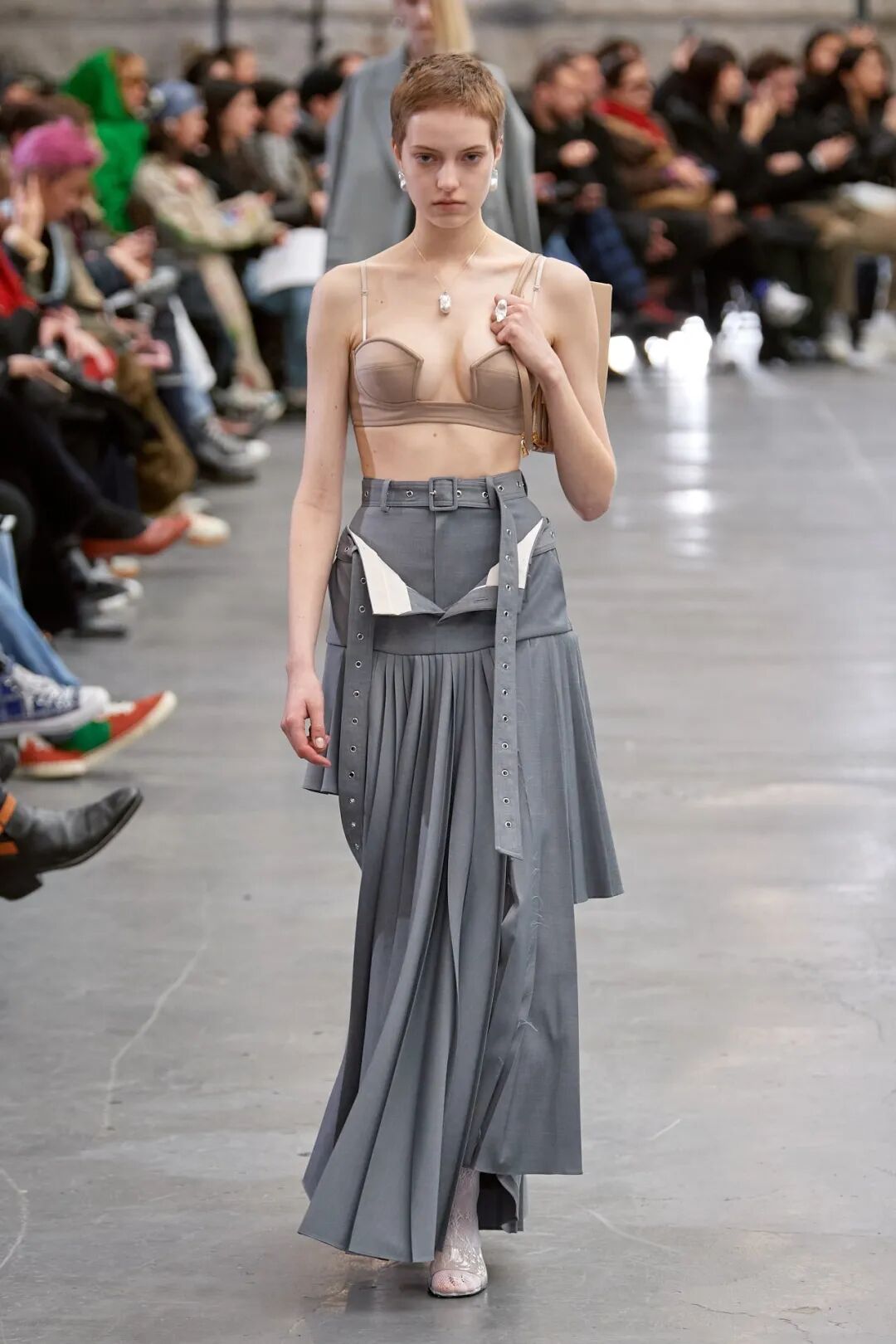 叠穿扭曲的风衣和多层的裤腰,延续了Rokh的品牌基因,对于解构和面料材质对比的熟练运用。往季中常见的金属部件和多条装饰的腰带,在本季依然在整个系列的服装展示中占据着大众的视线。