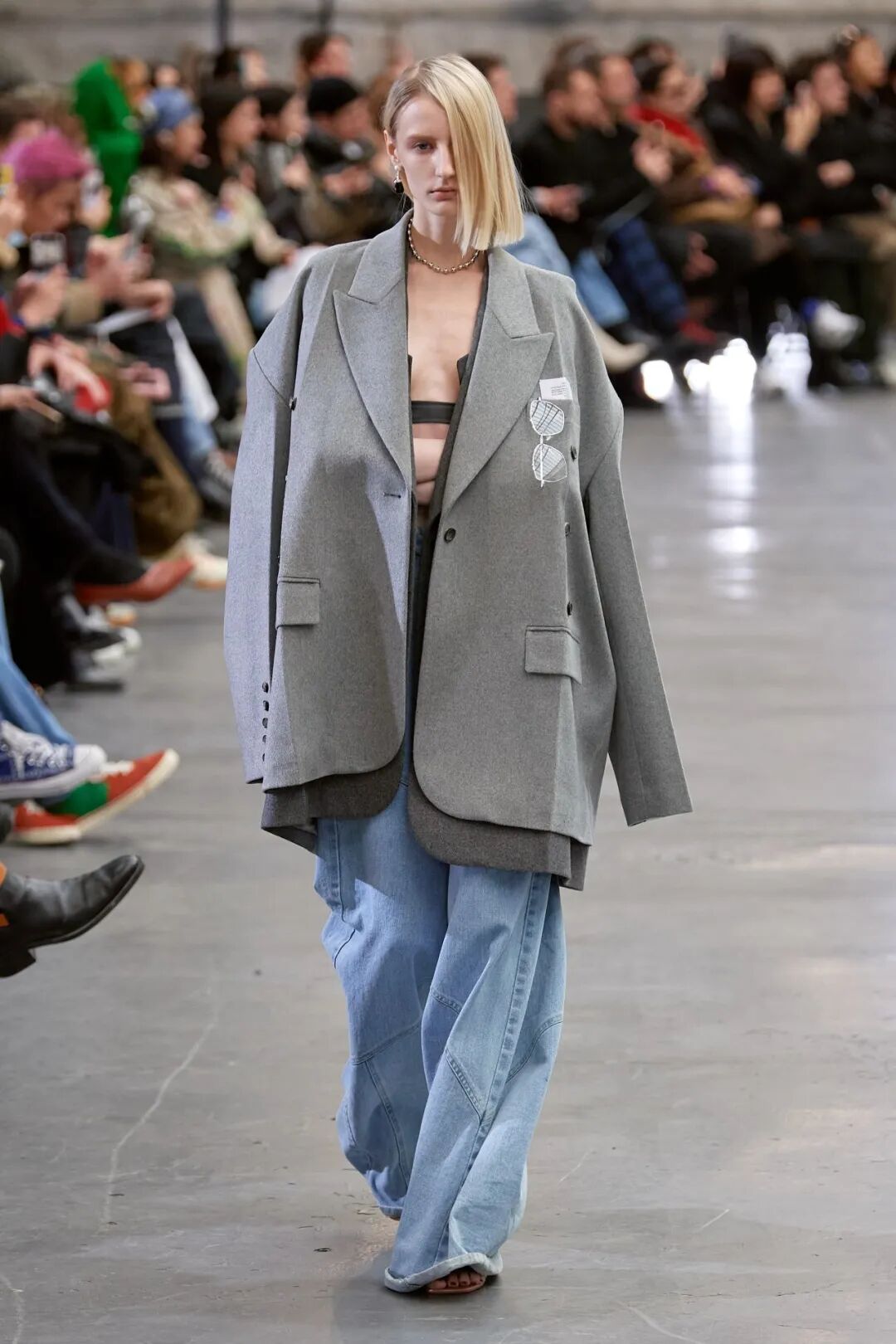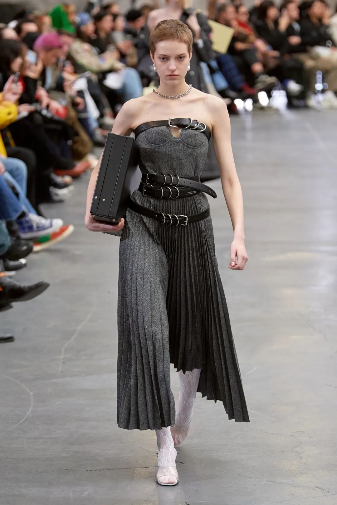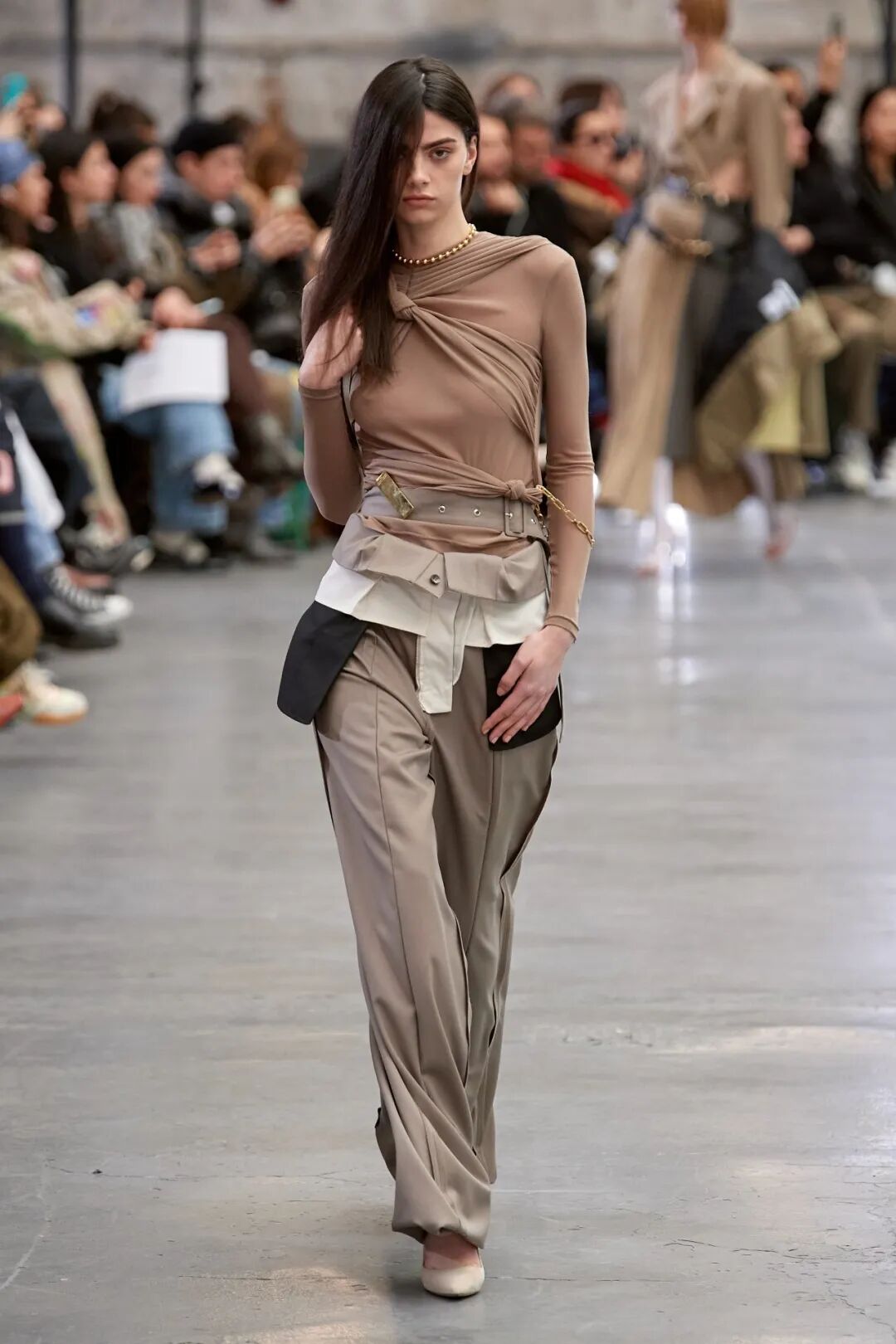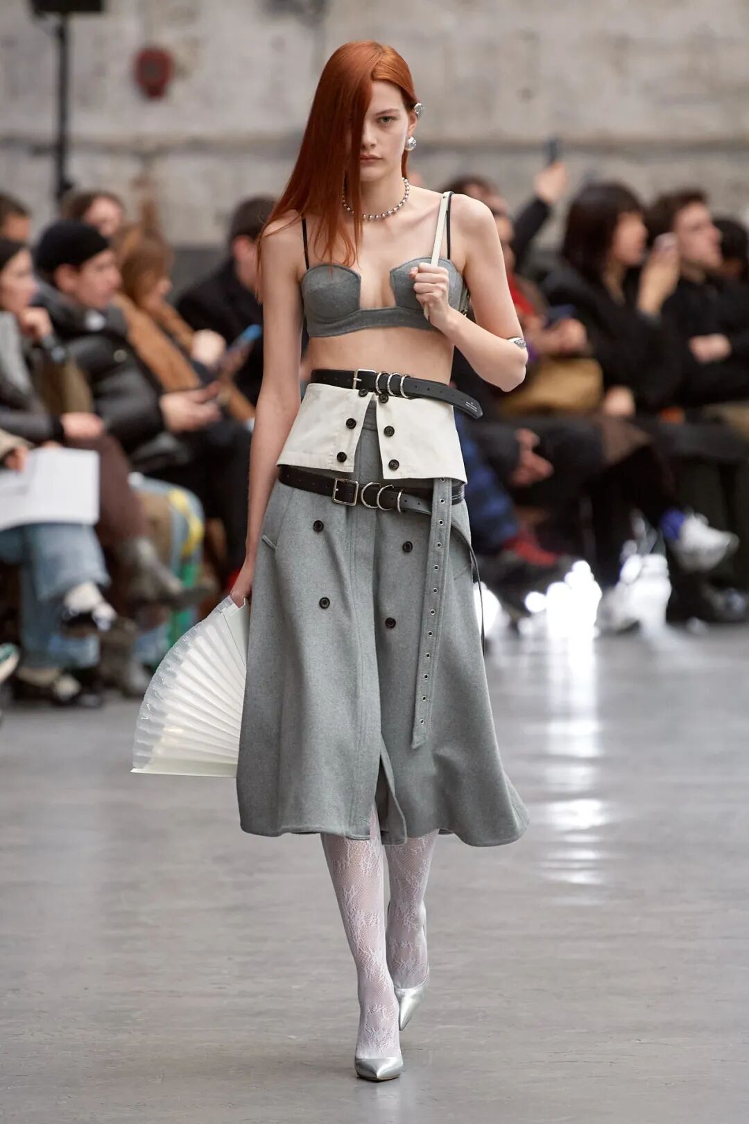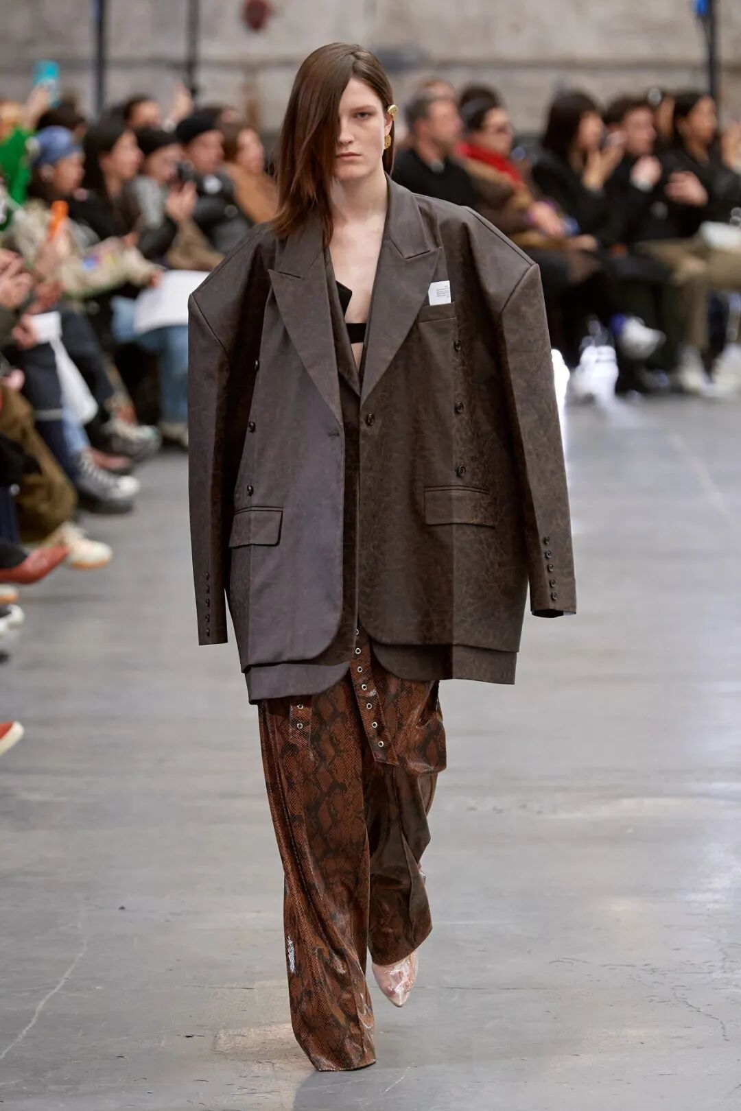 叠穿扭曲的风衣和多层的裤腰,延续了Rokh的品牌基因,对于解构和面料材质对比的熟练运用。往季中常见的金属部件和多条装饰的腰带,在本季依然在整个系列的服装展示中占据着大众的视线。