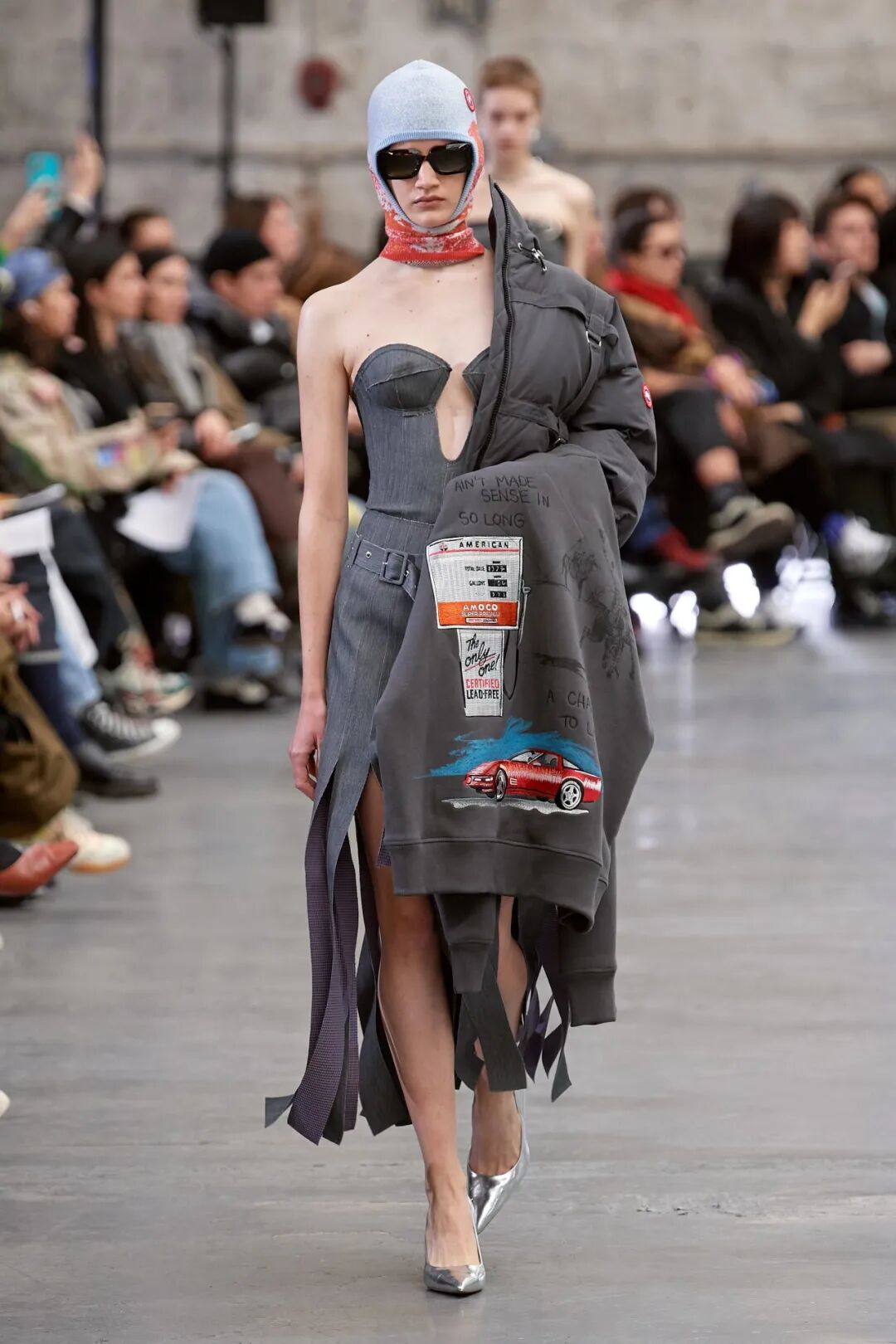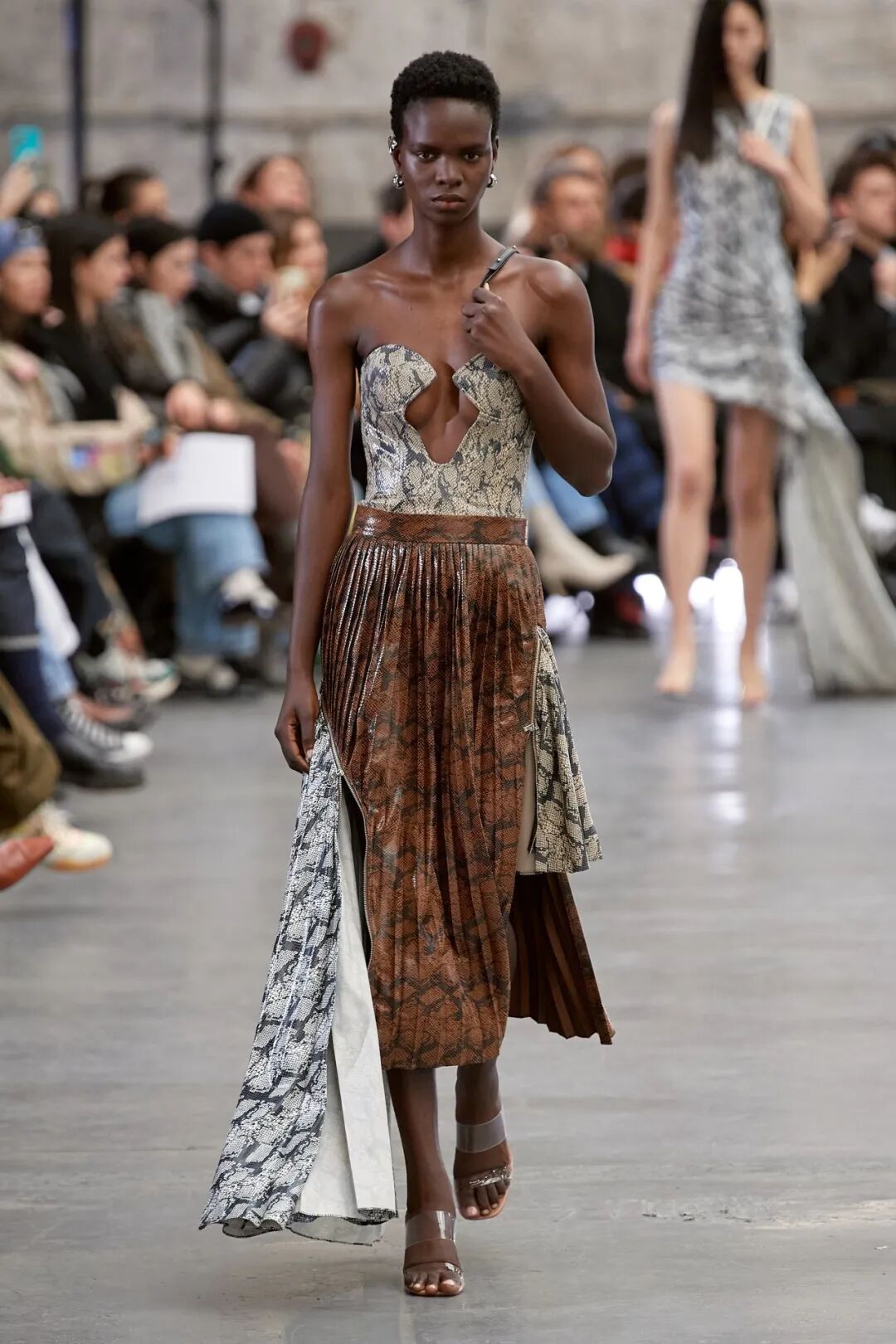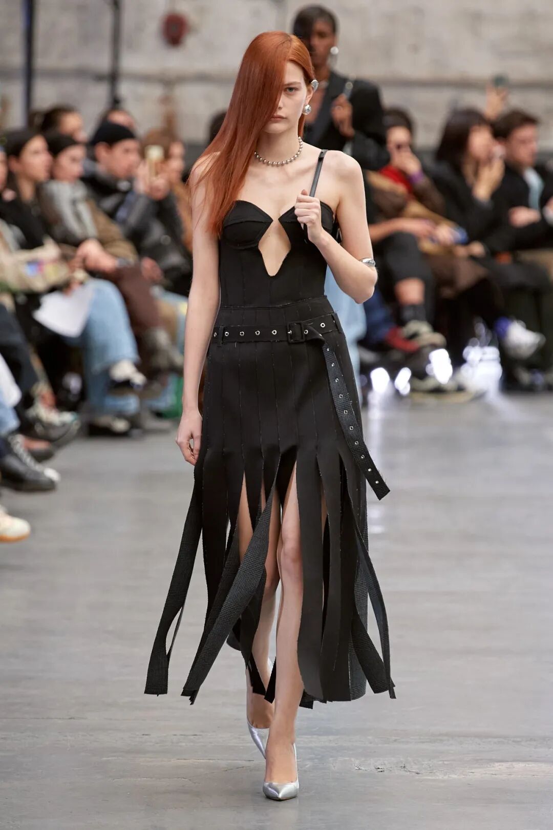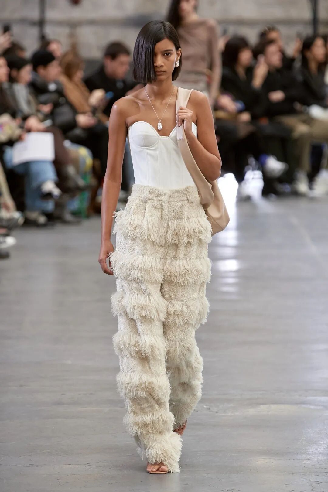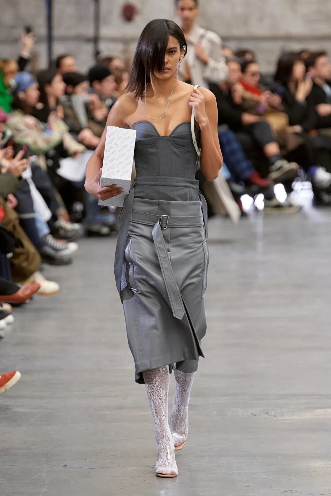 叠穿扭曲的风衣和多层的裤腰,延续了Rokh的品牌基因,对于解构和面料材质对比的熟练运用。往季中常见的金属部件和多条装饰的腰带,在本季依然在整个系列的服装展示中占据着大众的视线。