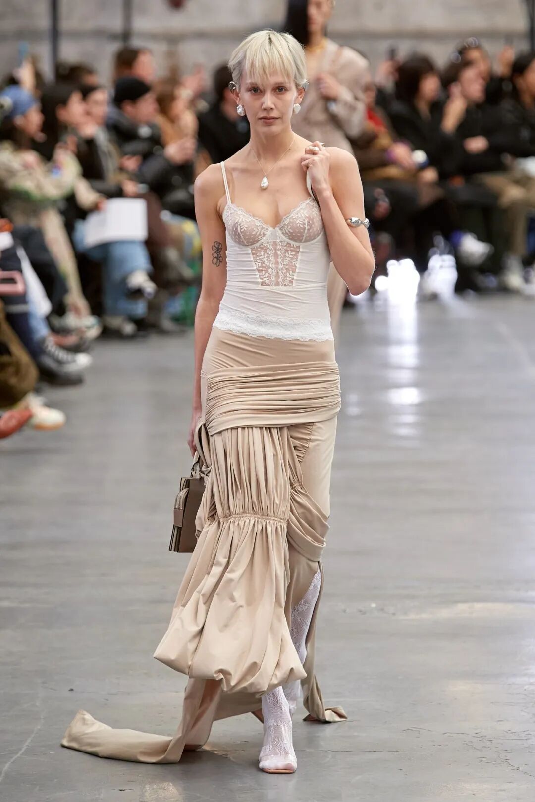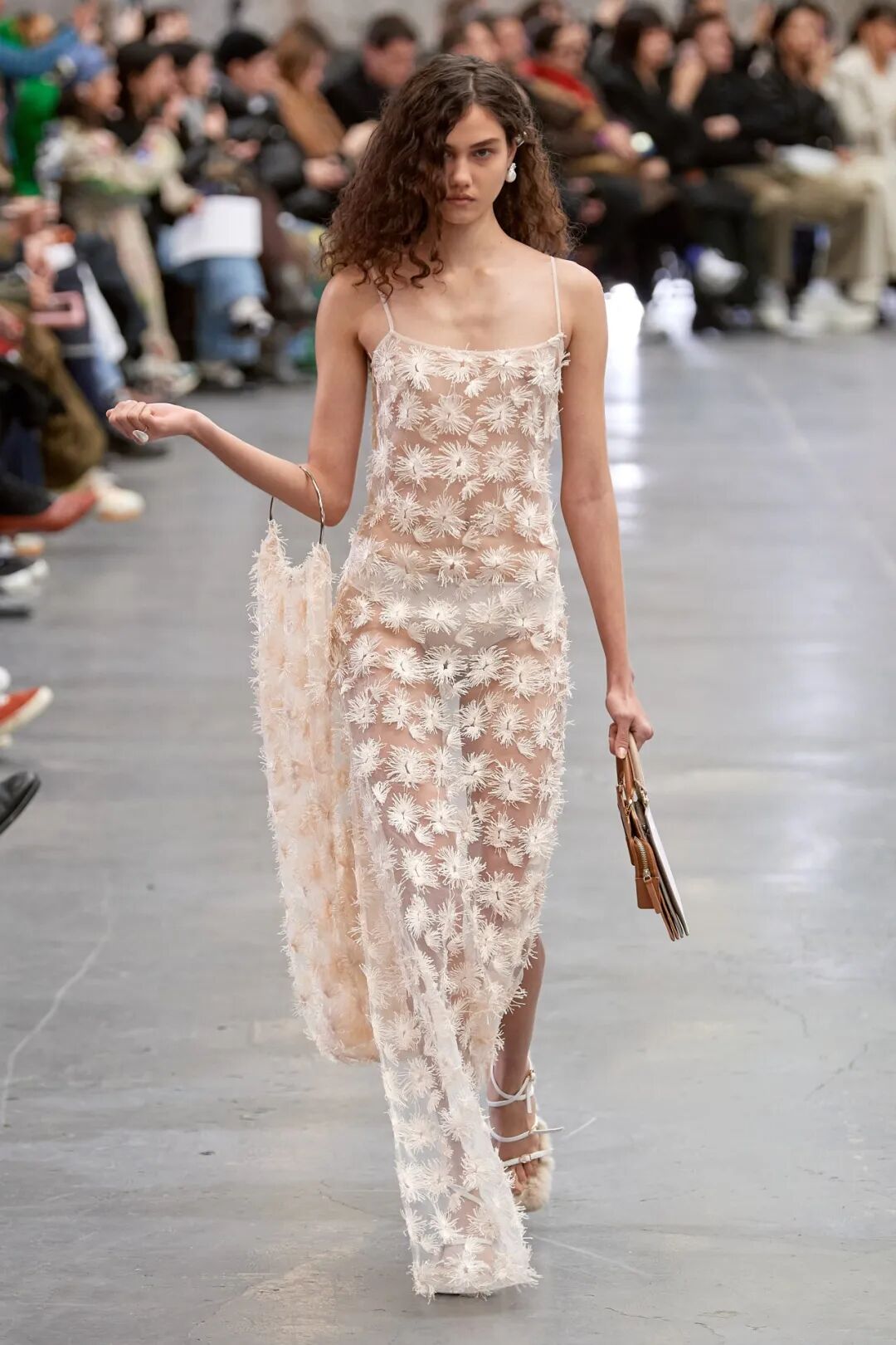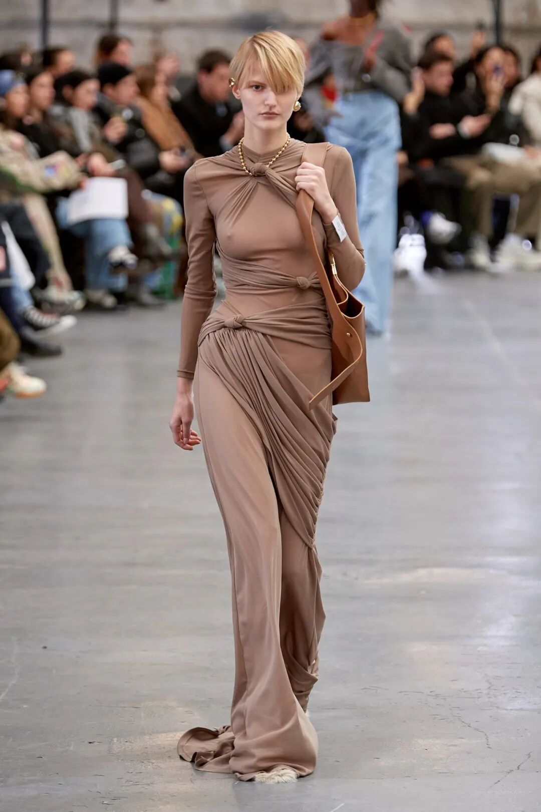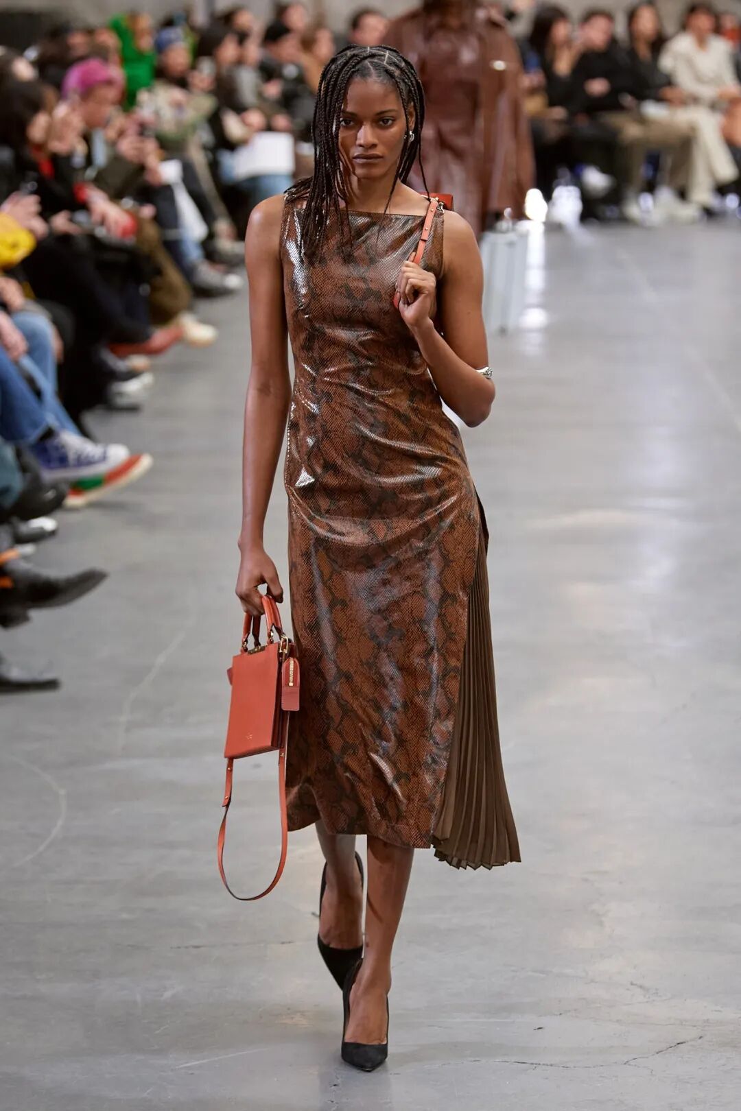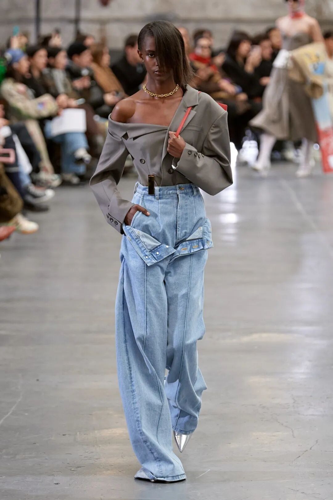 叠穿扭曲的风衣和多层的裤腰,延续了Rokh的品牌基因,对于解构和面料材质对比的熟练运用。往季中常见的金属部件和多条装饰的腰带,在本季依然在整个系列的服装展示中占据着大众的视线。