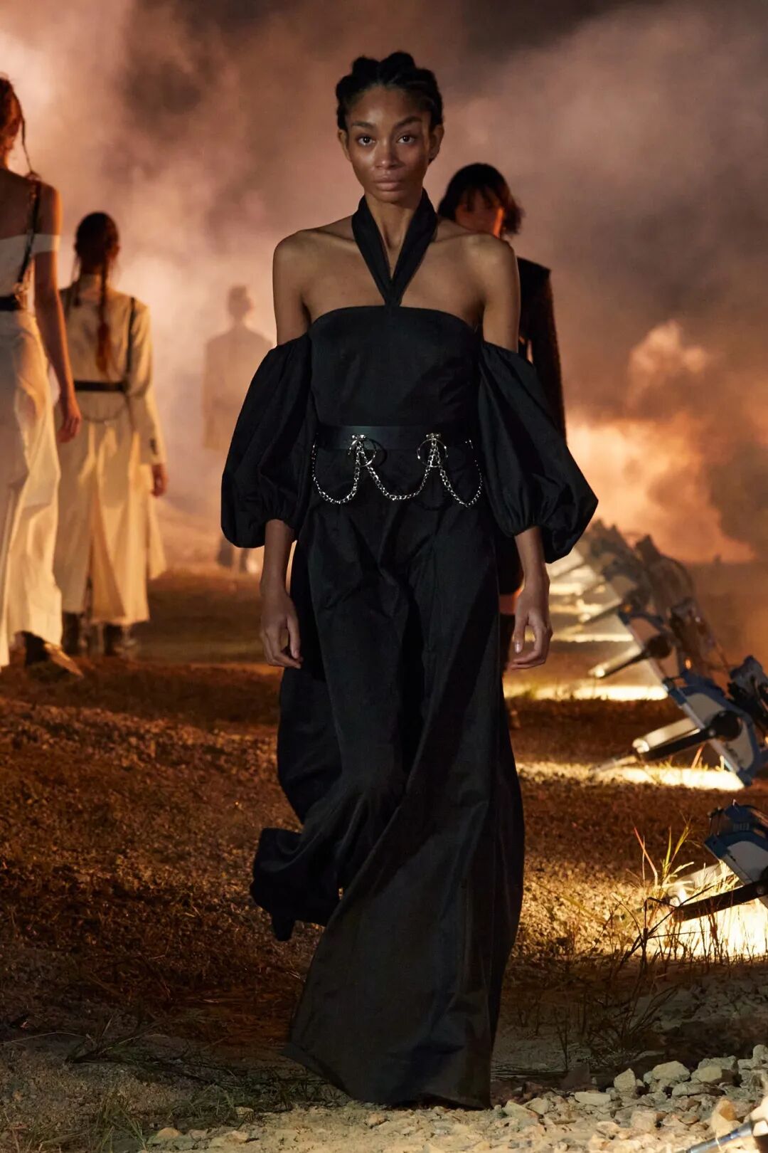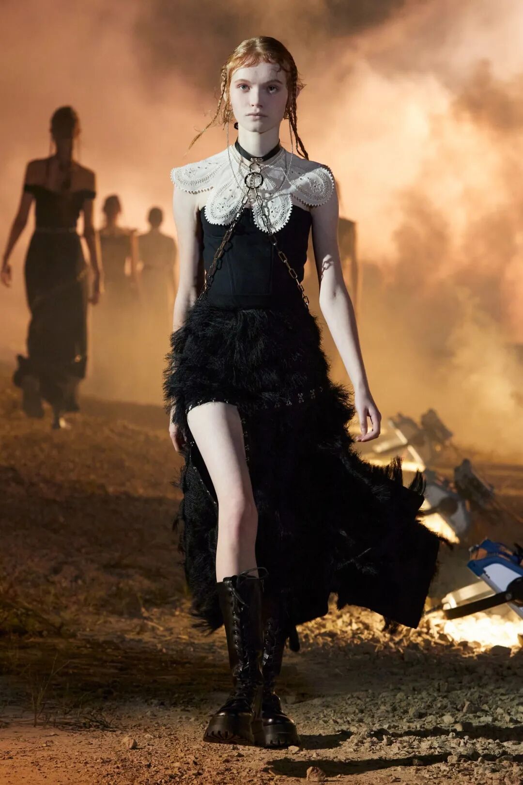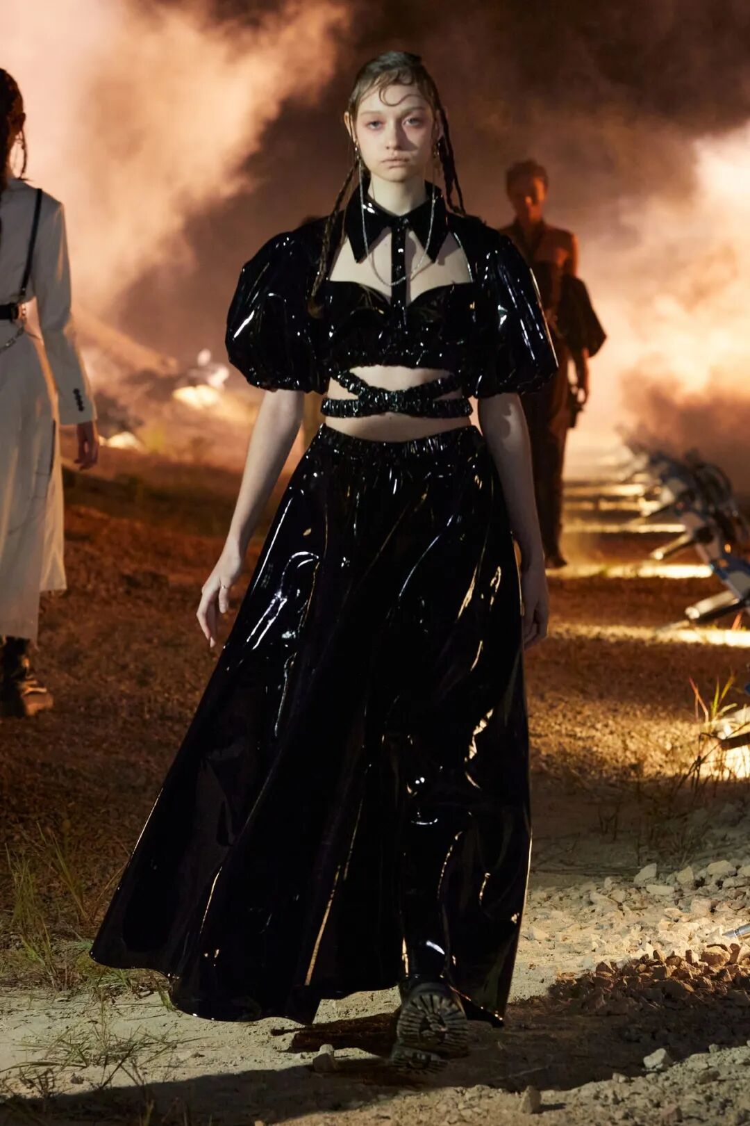 设计师称这部电影让他在疫情封锁期间,感受到了数小时孩子般的想象世界的乐趣。设计师想把这种天真无邪的感觉传达给观众——尽管秀场的布置是让模特在烟雾笼罩的火光中出现,周围充满像是世界末日般的火焰。