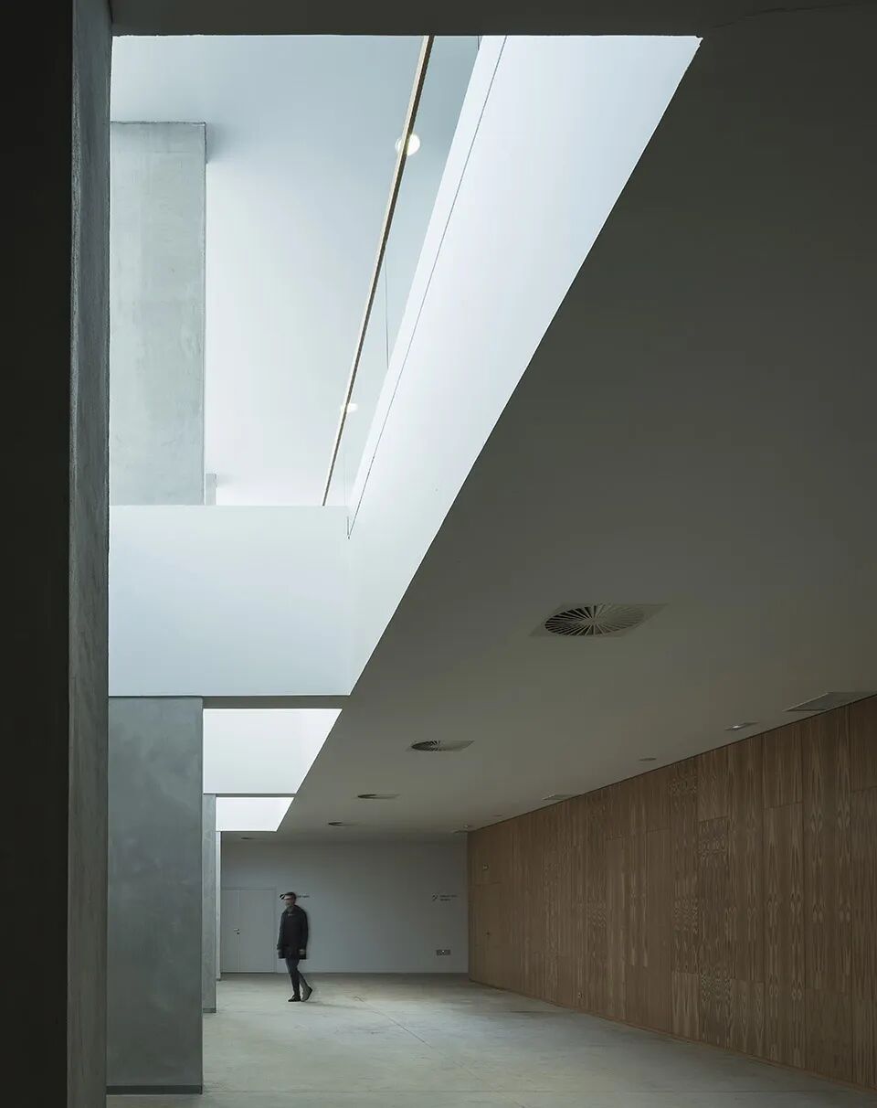 这个空间就像一个向地域敞开怀抱的大房间,消解了公共和私人之间的界限,最终成为了一个被建筑群环绕的集体聚会场所。其周围设有展览空间和三个大房间,大屋顶覆盖着包括室内广场的所有空间。
