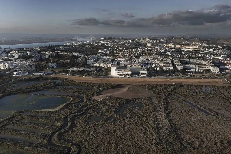 阿亚蒙特是一个被两大水源环绕的边境城市。它的西侧是城市的重要地域依据,也是与葡萄牙的天然边界的瓜迪亚纳河口;东南侧遍布广袤无垠、时刻变化的沼泽地和盐滩,这些景观直到近期拆除1990年代的铁路带才逐渐被忽视。阿亚蒙特会展中心就坐落于这片被城市重新发掘的土地上。
