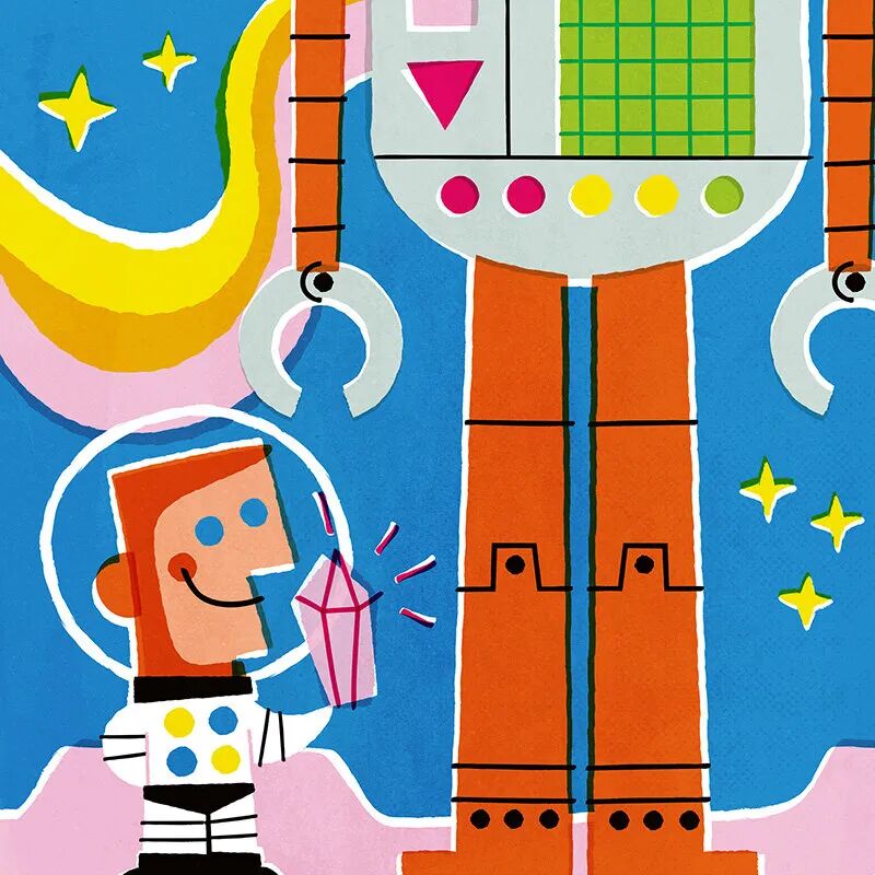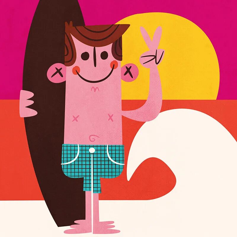 从 Pintachan 的作品中,可以看到最多的就是大眼睛、微笑、明快的色彩喝十足的趣味,这也是他想要做的,Pintachan 的插画风格复古、童真、幼稚、流行,充满各种异想天开的脑洞。在创作中,铅笔、蜡笔、iMac、Wacom都可以是Pintachan 的创作工具,他将草图数字化,将它们变成矢量图,然后再PS中添加有质感的肌理。