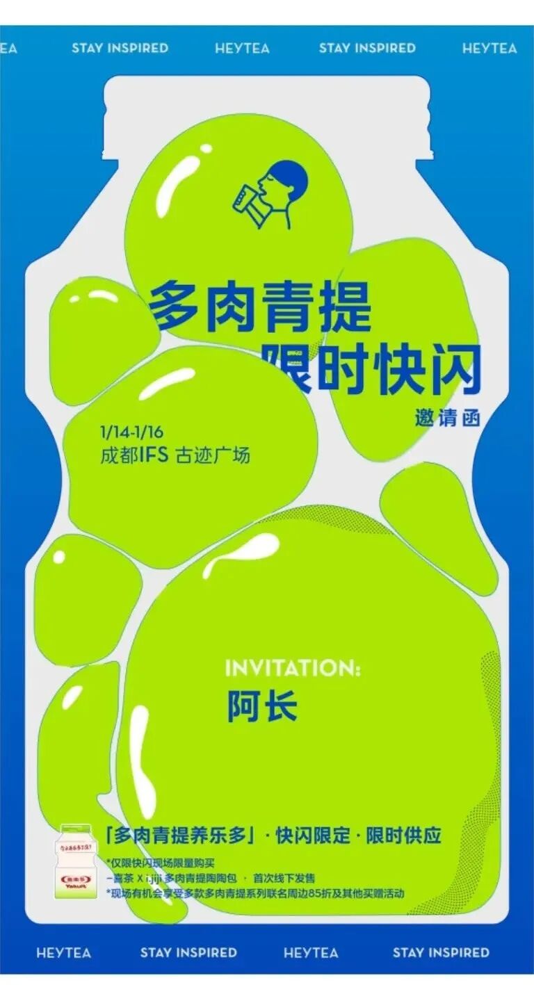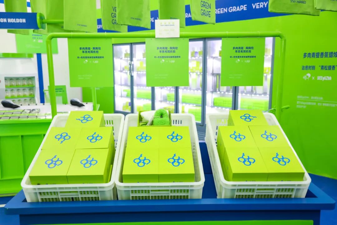 HEYTEA’s popular drink, Succulent Very Green Grape series, has been on the market for just 2 weeks, and its sales have jumped to the top 2 in the HEYTEA beverages’ popularity listThe IP project of Very Green Grape will continue the development of "trend items". In order to increase the popularity and continuous dissemination of Very Green Grape, take the popular color and green color as the starting point, and cooperate with various original design brands to deepen the influence of succulent and green.