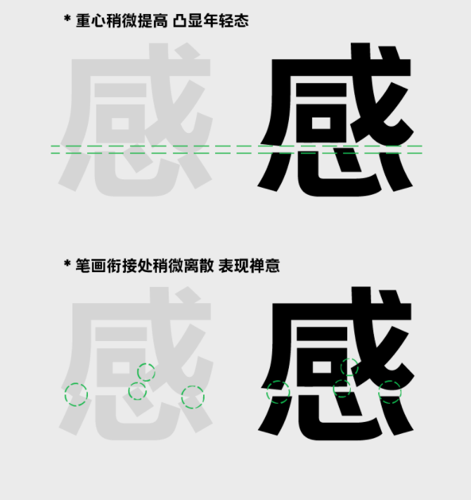 喜茶灵感体带有些许俏皮,将提笔的线条变直为曲,意在消除过于平直僵硬的视觉感受,软硬对比展现视觉韧性,呈现出清爽丰富的效果。