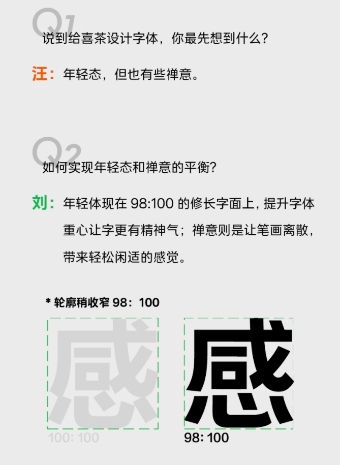喜茶表示:设计一直在喜茶的DNA里,在成为“喜茶设计公司”之前,首先是要用心设计一杯茶。再到设计店面、海报等,喜茶想把设计和灵感传递给更多人。现在,是时候对字体下手了。