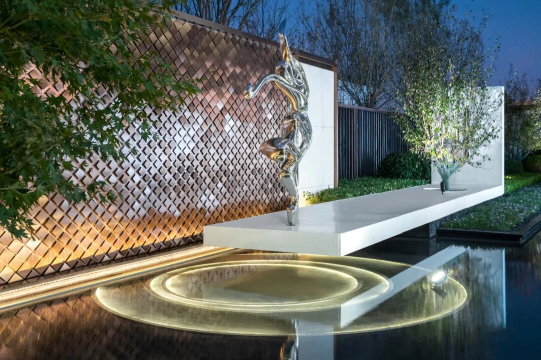 设计师将雕塑放置于水景之上的探台,彰显出水上舞动的舞者,他不仅仅是精致的、更是复杂的、多元的。秩序井然的空间既独具特质,又相互衬托。