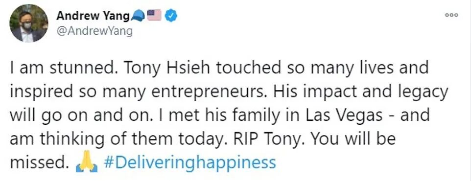 他念了哈佛,连续创业成功,他有好多好多钱,他的商业理念是倡导传递快乐给他人,同时他做到了。这些的确都可以说是成功的标志,但谢家华显然没有止步于此,他一直不停的寻找,无论是下一个成功,还是生命的意义,他没有停下脚步,或许他为此走了一些弯路和错路。但是死亡的来临,最终没有给他更多时间和机会。