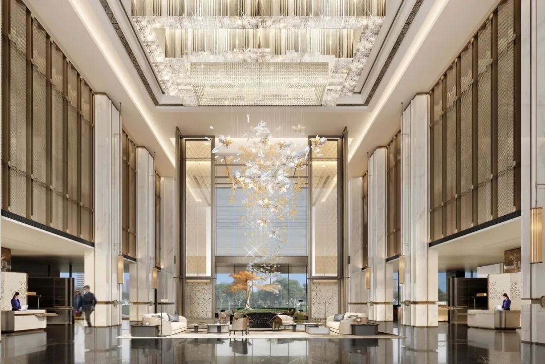 酒店室内设计由CCD香港郑中设计事务所担纲,以“游记”的形式徐徐展开对各个空间的叙述。从宾至如归的入口为起点,通过东方园林与当代艺术的融合,营造游园观色,舒享本真的理想意境。