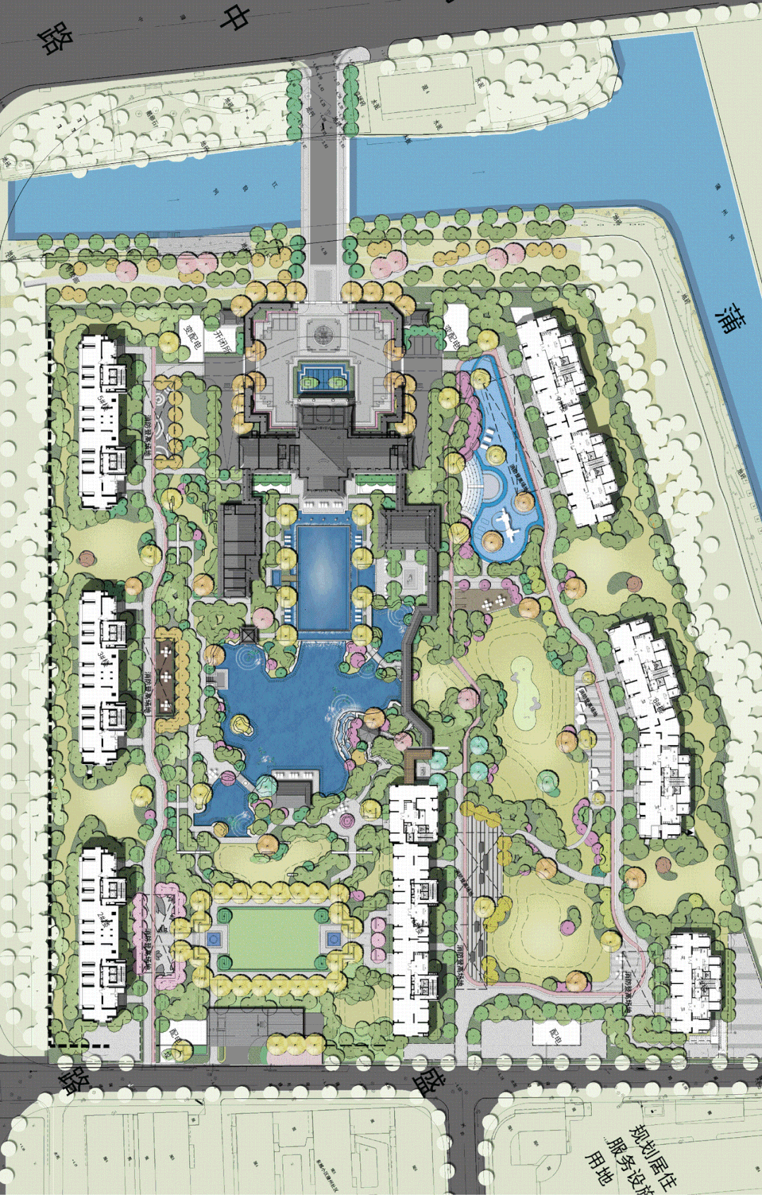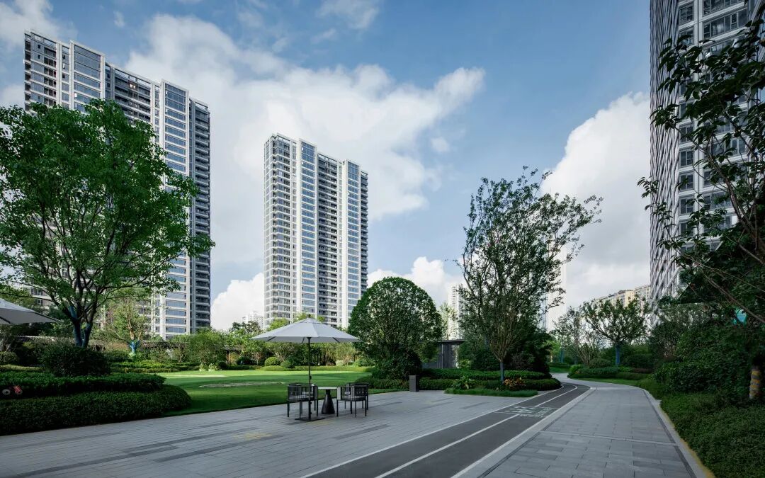 到达-沉浸-静享,运动-漫步-休闲。将湖泊意向渗入整体空间线条,苔地如茵、草木扶疏的草坪空间结合高尔夫练习场与休憩廊架,造一处闲庭草色的自然谧境,烘托贴合都市生活的东方意境,放大感官,品味更深邃的生活滋味。