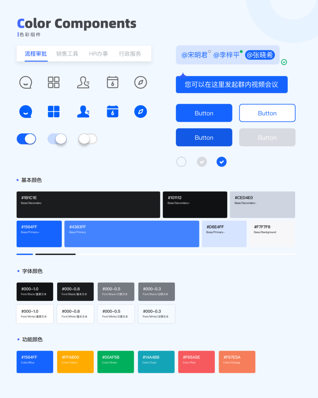 为保证产品一致性,避免用户在使用不同功能时产生割裂感,设计的规范、统一的组件、一致的设计语言就变得至关重要,我们力求每个组件的样式多样性以适应不同场景,同时也为产品后续的开放能力建设打好基础。通过组件库、规范文档设计师可以直接基于典型页面做设计、复用或者修改细节,极大提升设计和产品研发效率。