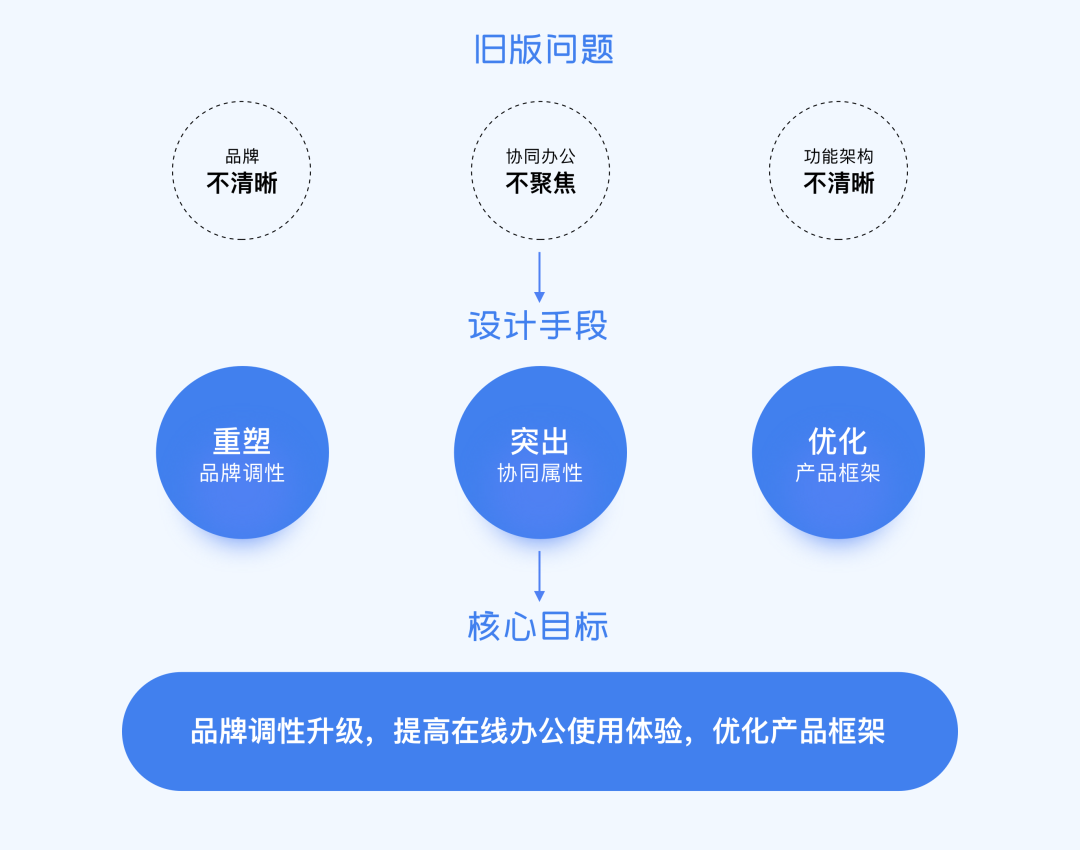 现在市场上的企业办公产品越来越趋于同质化,作为服务内部员工的产品如何提升产品温度感和内容扩张力也是我们本次设计的改版目标。