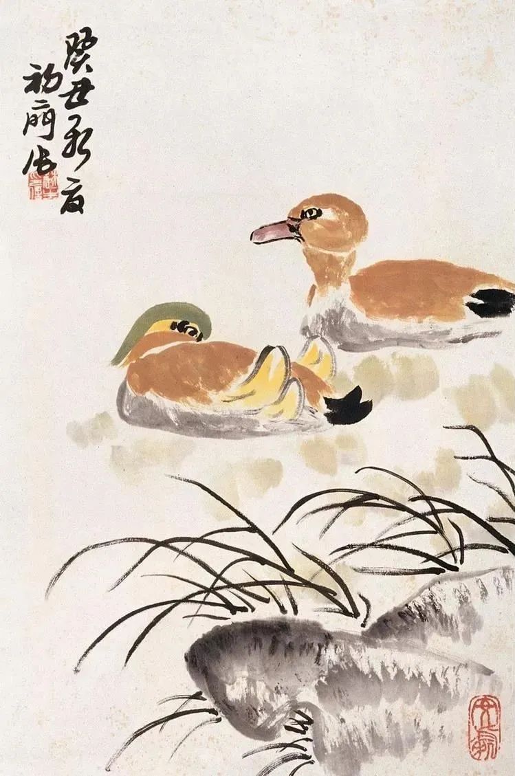 充分发挥和利用水这一笔墨和色彩的介质作用,较大范围内,更大程度上以水的施用来带动多种技艺的综合能力,可以拓展写意花鸟画的表现空间,丰富写意花鸟画的视觉审美效应。用水的方法,从理论上讲似乎很简单,概括起来,主要表现为:少量用水—干、适量用水—湿、大量用水—晕,技巧有泼、吸、渍、冲、破、积、铺、点等等。而实际操作起来,水一接触到宣纸,有如脱缰的野马、收拾较难。尤其是大量用水,要做到水晕而墨彰、晕中有物、晕中有骨,决非百日之功。当代著名画家汤文选,是利用色破墨、墨破水、水破墨的高手。所绘的《虎》、《猪》、《鹭》、《梅花》等,都是我们学习,借鉴的尚好教材。用好水法,这需要经过长年积累,熟能生巧,才能达到发挥自如。