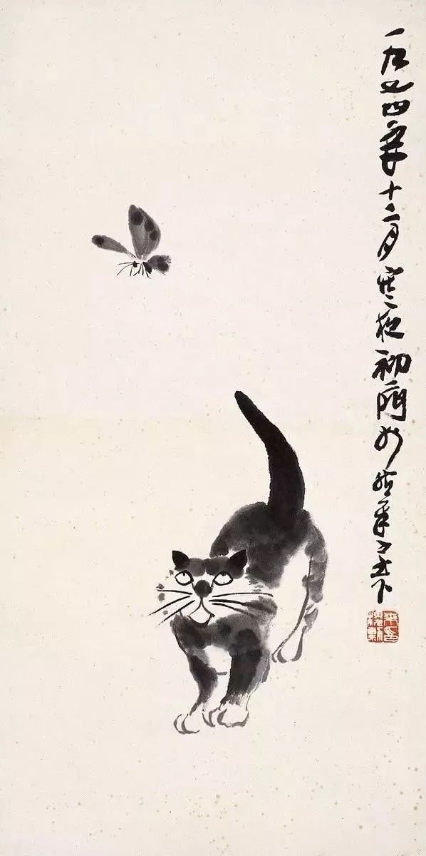 墨破色,就是先用色笔画出所描绘对象的形体,然后以墨笔进行勾画,这样可以形成动感,而且表现出来的视觉效果,较为丰富,也可以充分展示出笔的力度和动感。虚谷善于用墨破色,在他现存的一幅画中,他运用此法表现赤练蛇十分巧妙,先用朱石票画出一条盘绕在树枝上的蛇形,再用墨笔画蛇身上的花纹。厦门的白磊,善用色笔画出紫藤的花形,然后用墨笔勾画出花苞的形体,使其形成灵动之感。也有人先用色笔画出虎、猫的大形,然后用墨笔勾画动物花纹,使其形成自然毛绒感。