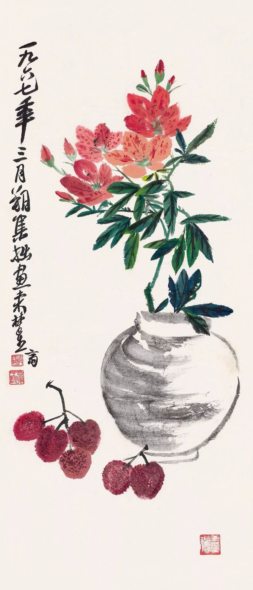 中国画是线的艺术,花鸟画也不例外。线条是构成中国画的骨架,未有骨架,画是立不起来的。所以作画前,必须先着墨,墨得靠水调制方能用。古时用墨须得研磨,研磨离水不行。而现在有成型的墨汁,但作画时,也得用水调制,使用起来才方便,否则胶粘过大,行笔困难。花鸟画如画梅花先得立枝、干,树枝的干枝得有浓淡之分、阳背之向。要想充分表现梅花枝干其质感。需得调墨,调墨时要充分的调动水的介质,古代王冕画梅“十要”中提到“要水墨浓淡”。墨分五彩,已是靠水介质得以分开。墨经水的调合,就可发生浓淡、干湿、枯润的变化,才能更好的表现梅树的质感。所以说要使墨色有变化,非得调水不可。此为古今任何画家所少不了的一道关。