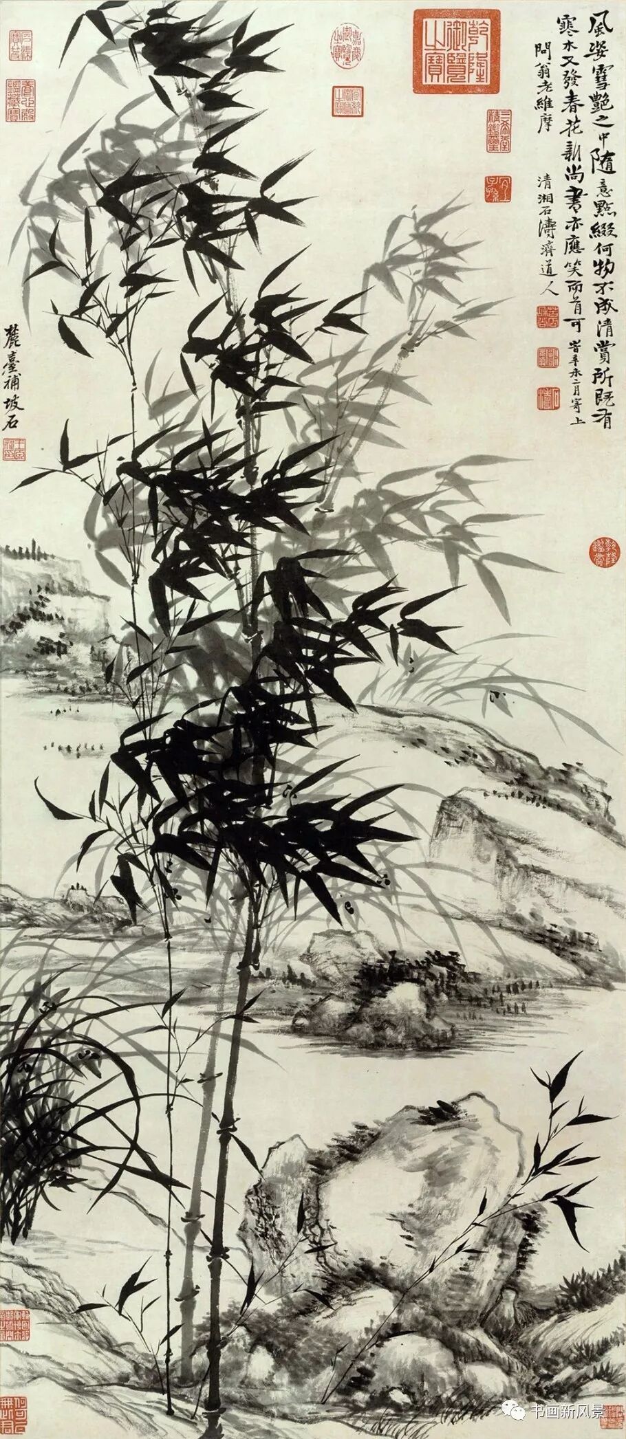 苏东坡说:“宁可食无肉,不可居无竹。无肉令人瘦,无竹令人俗。”道出了古代文人墨客的心声,也是石涛别号很多与竹子相关的缘由。