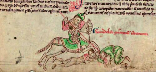 13世纪英国《大编年史》抄本插图中的鞑靼形象,他们被表现为一类极为负面的“鞑靼食人魔”形象,出现在1240年至1241年蒙古人入侵波兰和匈牙利之后。文字和图像中“杜撰”出的鞑靼形象深深扎根在中世纪文化对异己者形象的表现传统中,并投射出当时人对东方战敌的情绪,夹杂着焦虑与盼望的末日情结