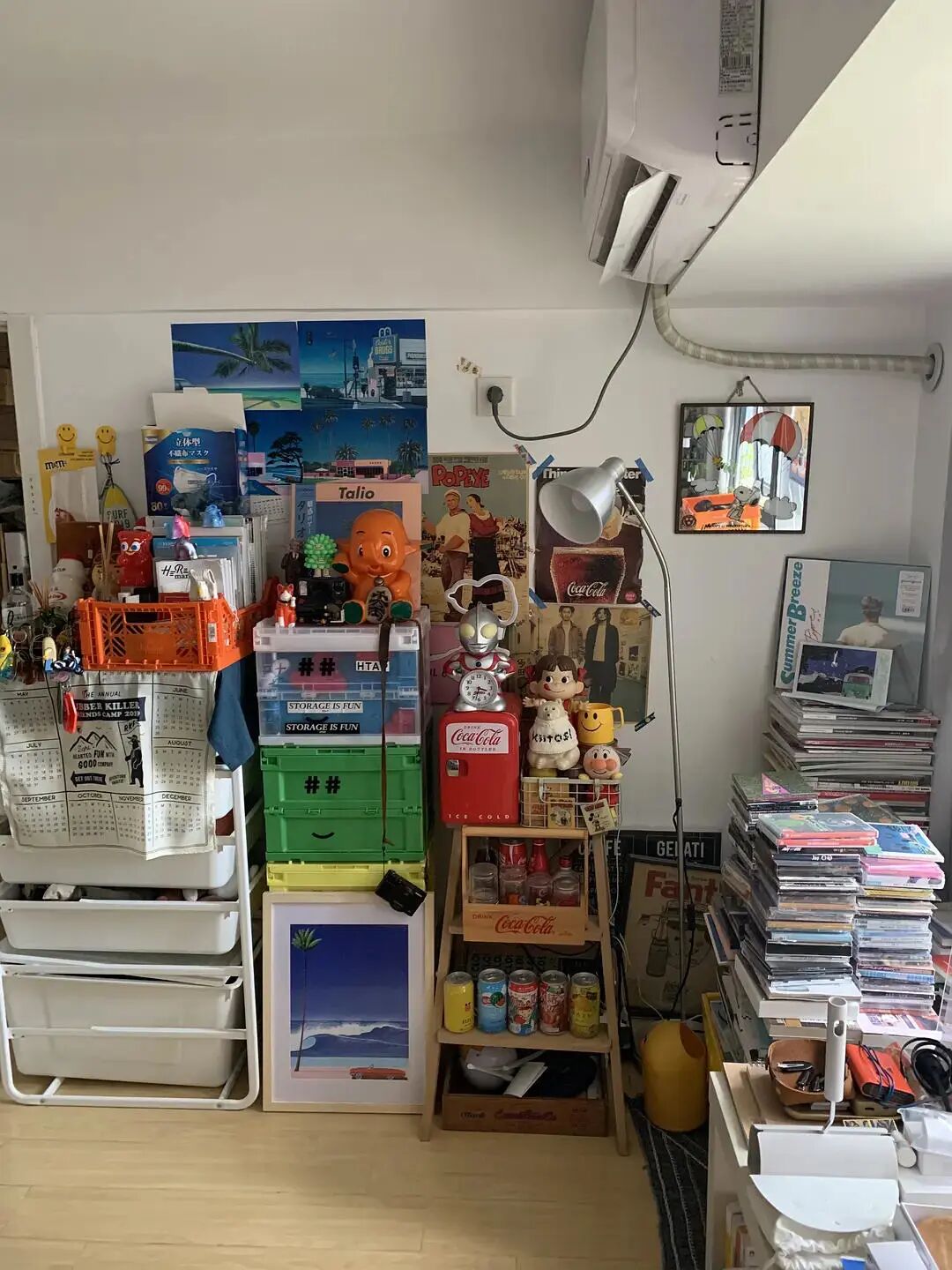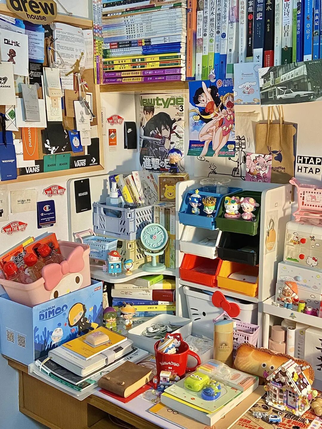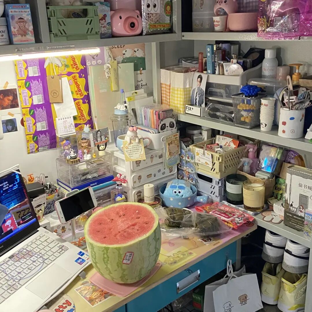 作为一个极繁主义,噗噗从上学的时候就很喜欢收集东西,大学时期也会认真布置寝室里的书桌。毕业后,有了经济能力,她拥有了随心所欲买自己喜欢的东西的能力。