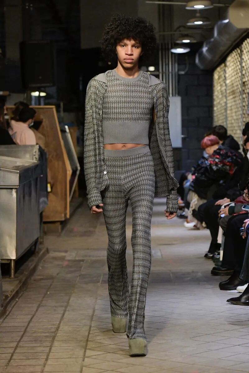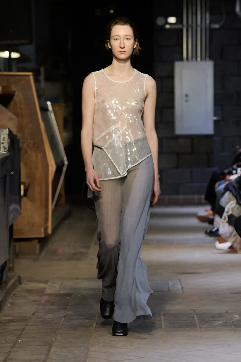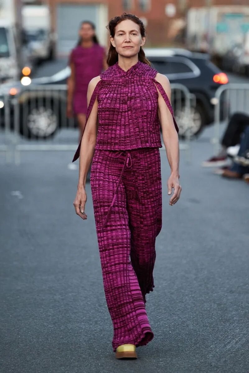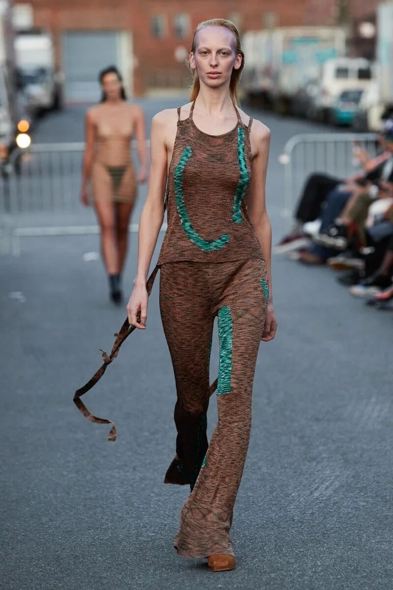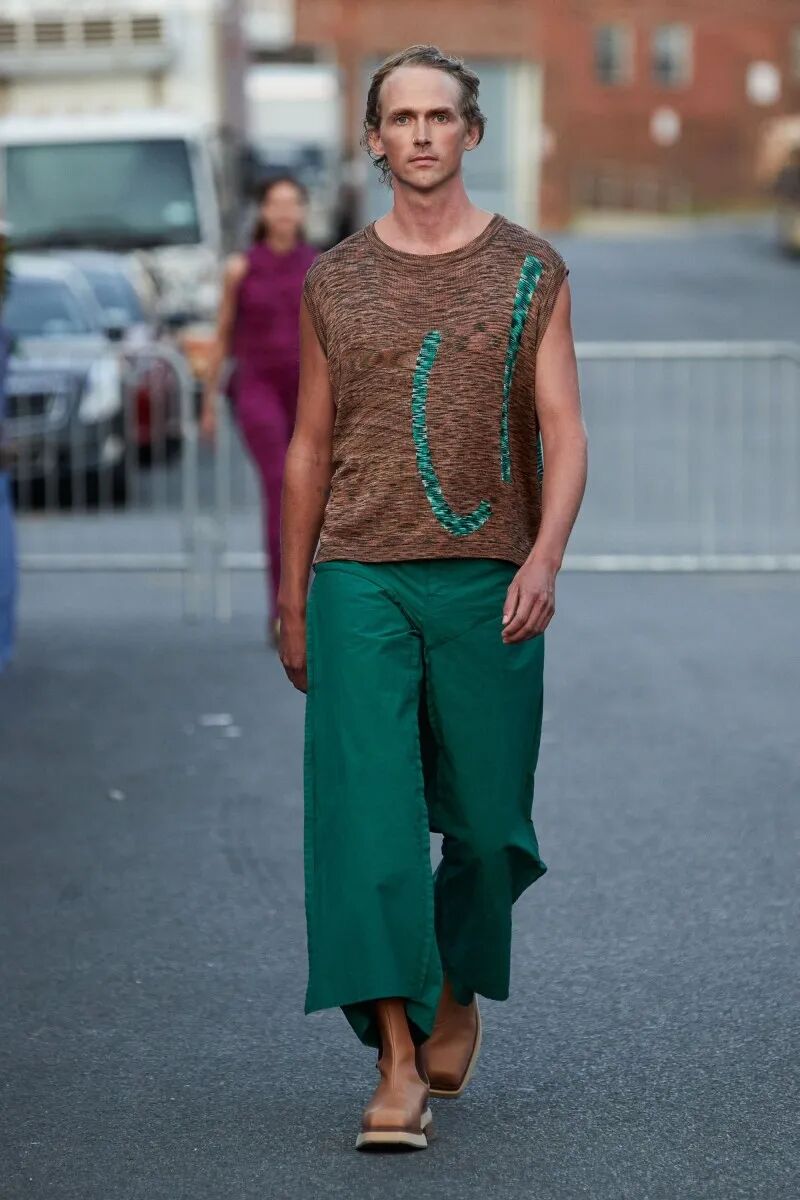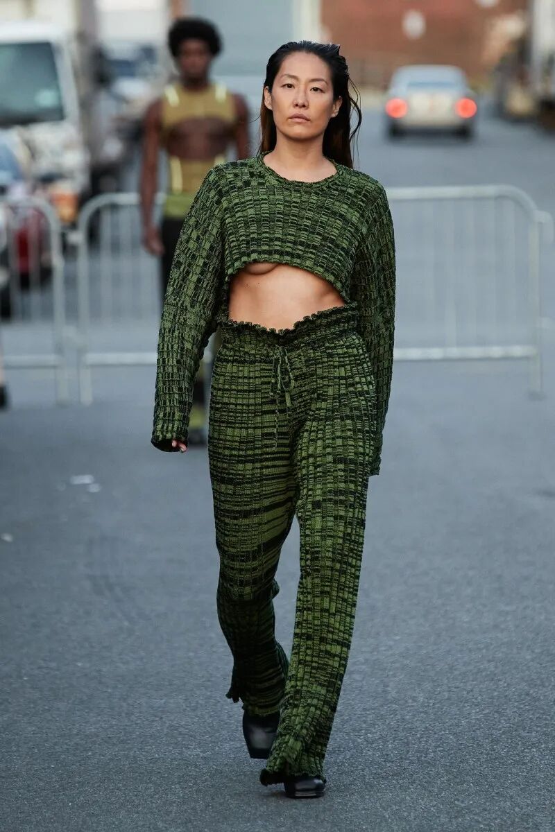 自品牌2012年成立以来,Eckhaus Latta已经迎来了他们的第十年。“我们不想怀旧或回顾”,Eckhaus在秀后说,“但我们确实想把我们早期收藏的东西带回来,特别是手工制品”,Latta补充说。