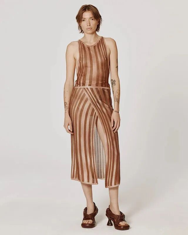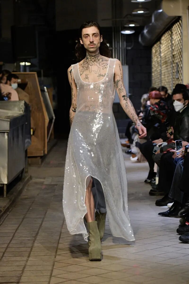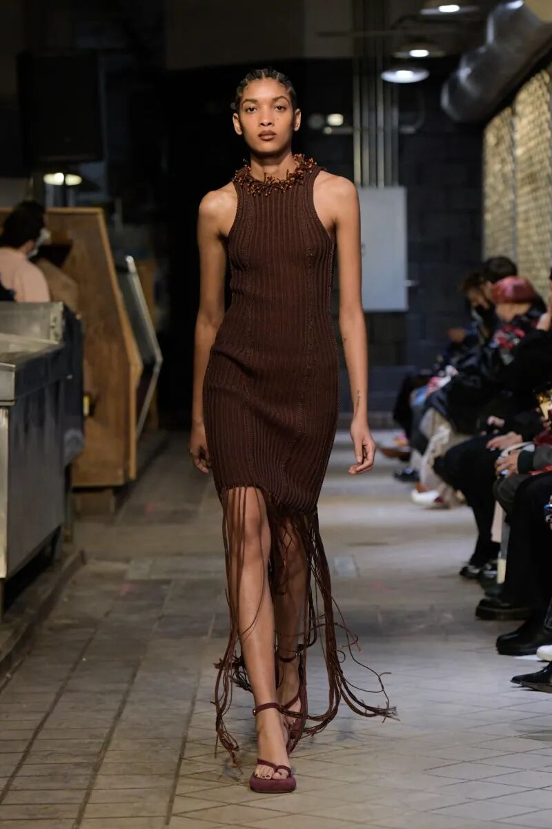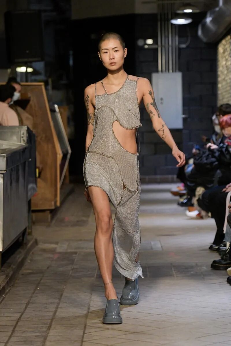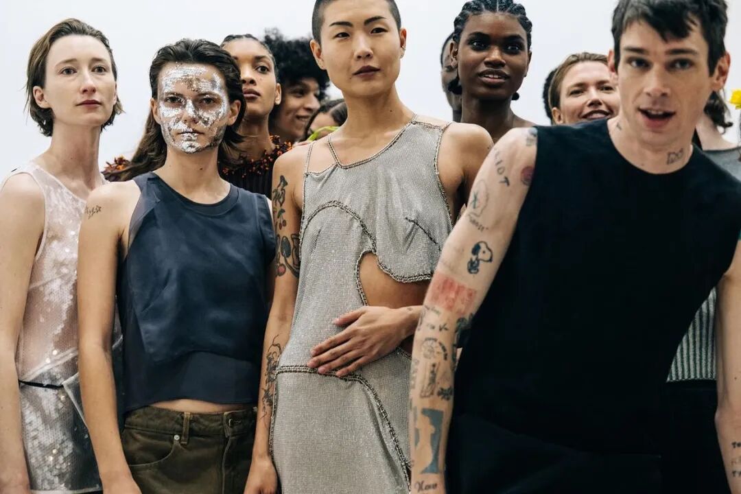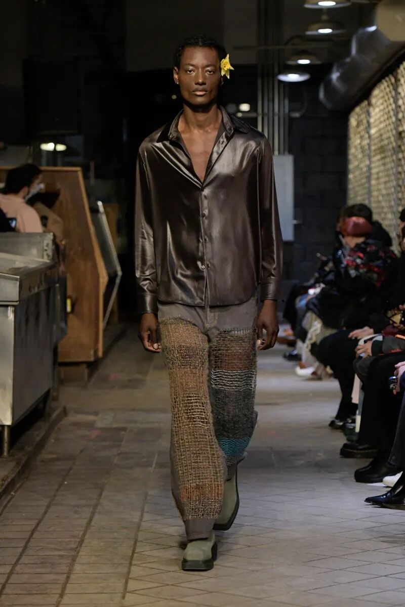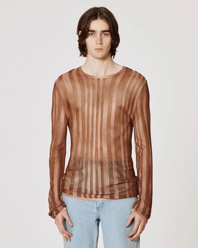 自品牌2012年成立以来,Eckhaus Latta已经迎来了他们的第十年。“我们不想怀旧或回顾”,Eckhaus在秀后说,“但我们确实想把我们早期收藏的东西带回来,特别是手工制品”,Latta补充说。