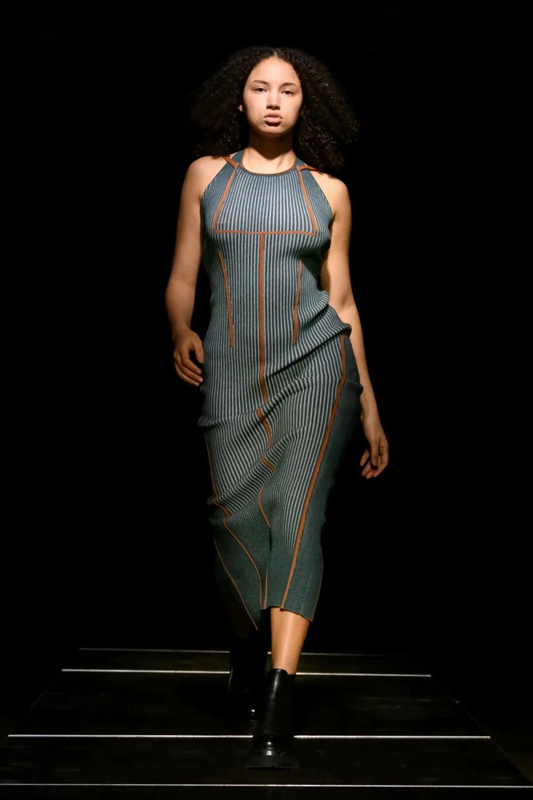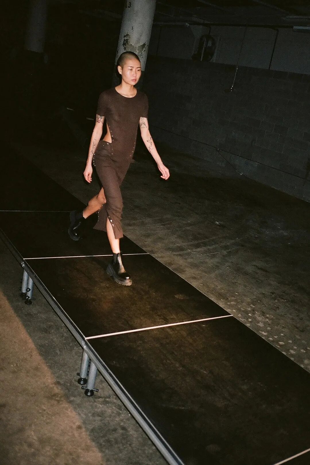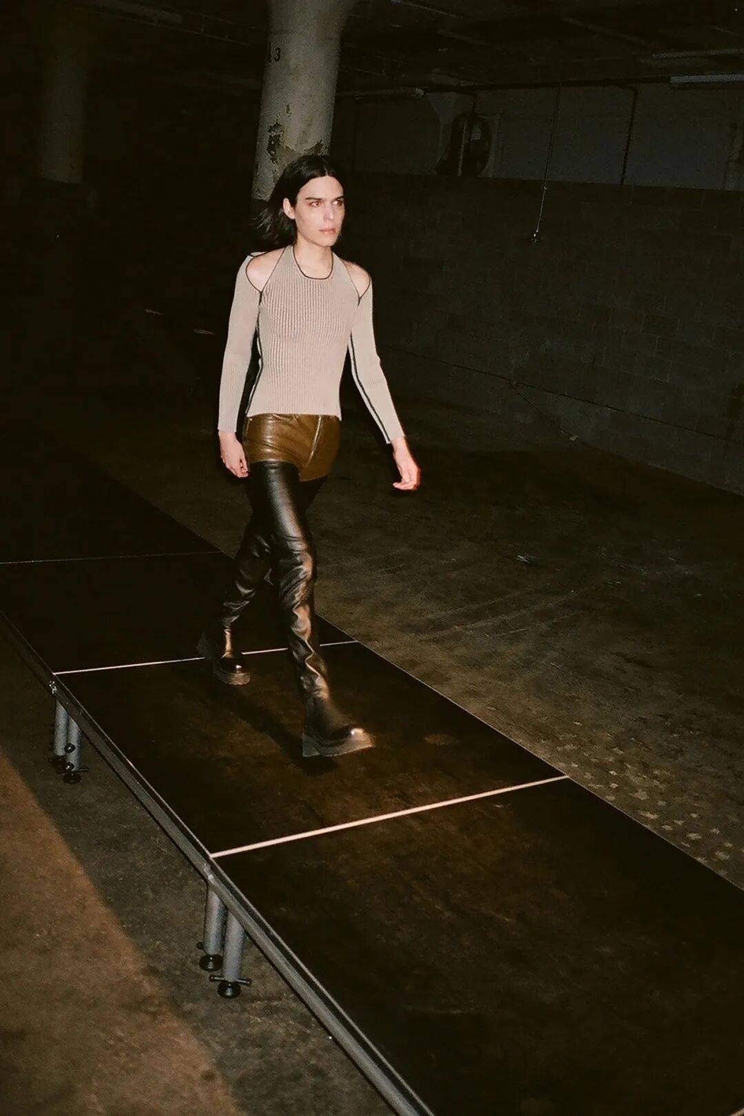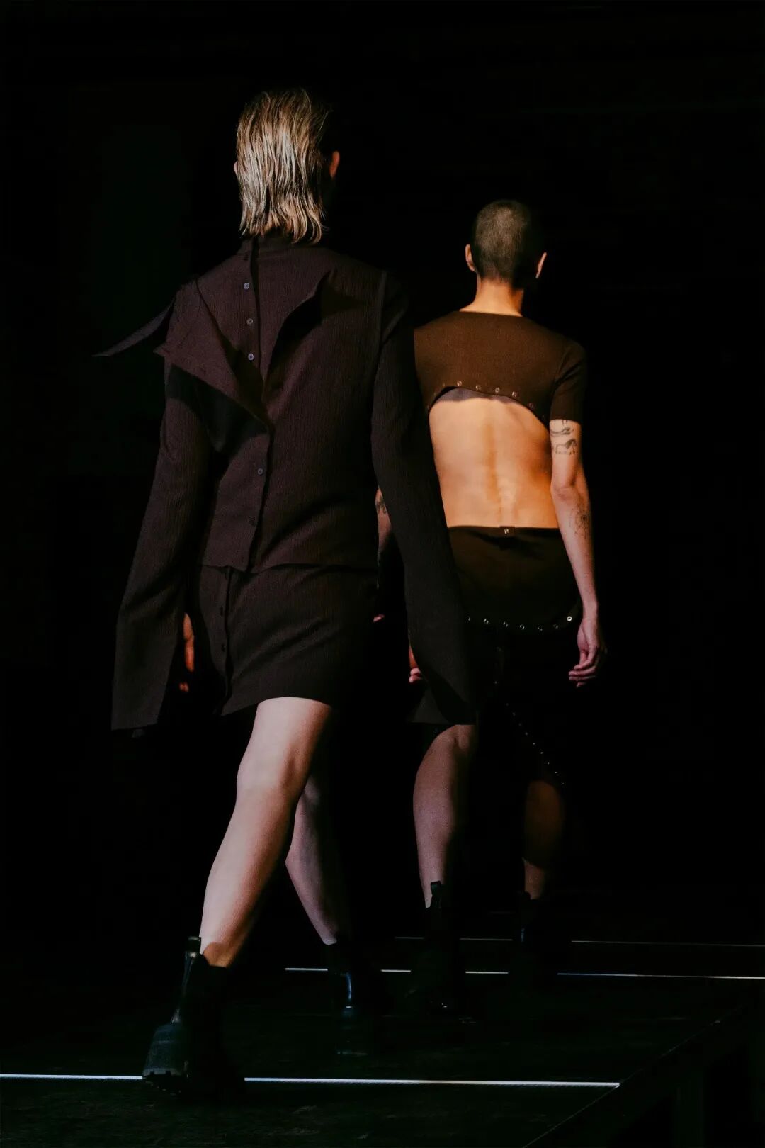 模特们的身体肌肤裸露着。在Eckhaus Latta的系列中总是能感受到Helmut Lang的前调和Susan Cianciolo的底调;这一次更多的是Helmut,而不是Susan。一系列光滑、朴实、性感的服装,以一种可被接近的方式对人体进行欲望的游行。