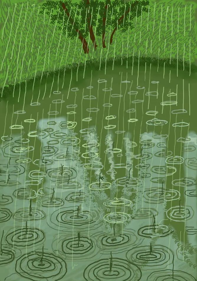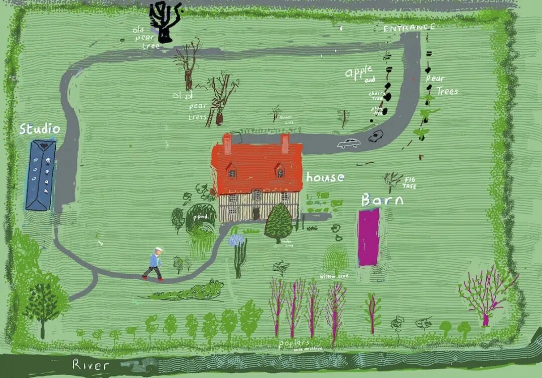 霍克尼在法国诺曼底的一处房产上创作了诺曼底春天的到来。虽然许多人将这位英国艺术家与洛杉矶和伦敦联系在一起, 但他在开始创作该系列时住在诺曼底。霍克尼告诉展览策展人伊迪丝德瓦尼,“我不必离开这个地方。有四英亩的土地,中间是七个小矮人的小房子,底部附近有一条小河,两边只有树篱,路边的树顶上有相当大的树,我从来没有离开过它。我绝对拥有我需要的一切。”