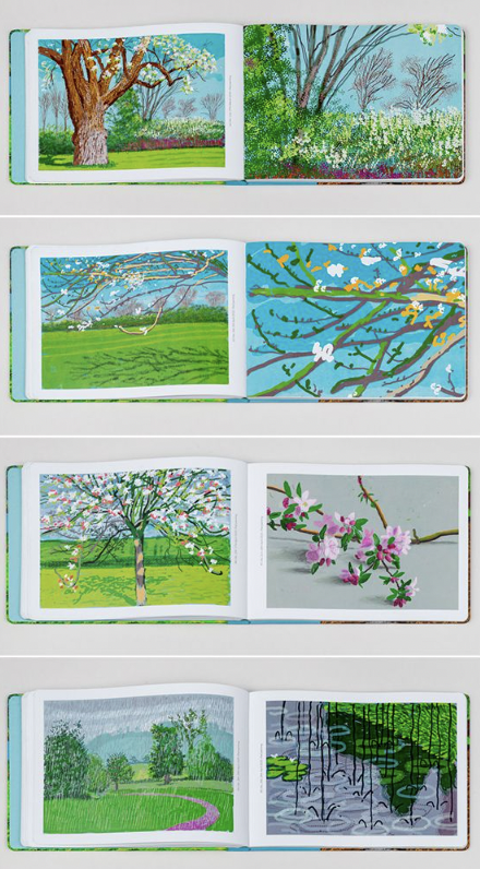 这些画作最初仅以数字形式存在,并以这种格式流传给朋友。霍克尼回忆道,“我一直将 iPad 的图像发送给大约 25 个人,部分原因是你可以,我认为如果可以的话,你应该分享它们,作为序列的一部分。大多数人认为他们得到的是我前一天完成的那个,但他们是大约五天前的,因为有时我还在研究最近的那些。你可以整理东西,改变它们,如果你喜欢的话,仍然可以利用它们,我在完成大约六次后开始发送它们。然后他们每天都收到。”