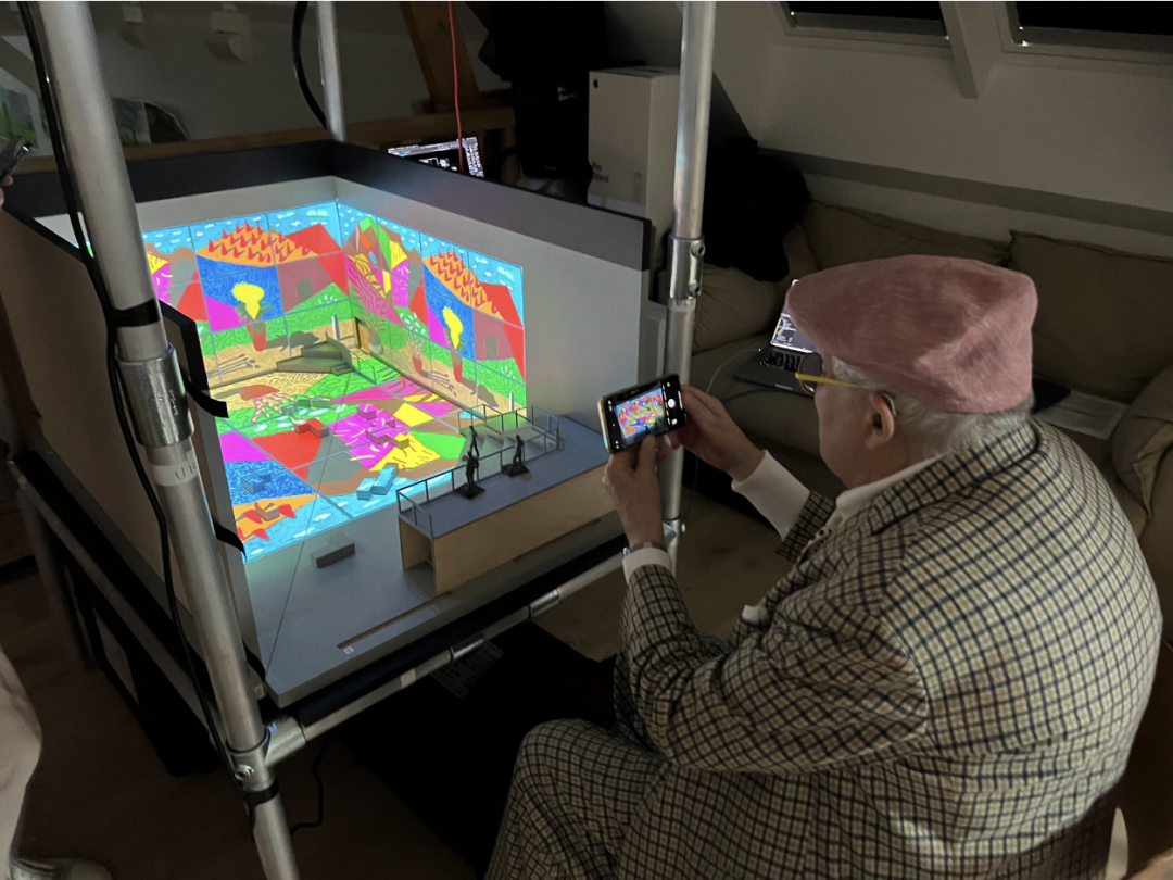 霍克尼的创作过程将在六个主题章节的循环中展示,并由 Nico Muhly 特别创作配乐。该新闻稿补充说:“我们与 [霍克尼] 一起乘坐他的视听瓦格纳大道,咆哮着进入圣加布里埃尔山脉,并通过他的舞台设计的动画再现进入歌剧院。” Lightroom 是 59 Productions 和 London Theatre Company 的合资企业,与霍克尼合作了三年才使这个项目取得成果。