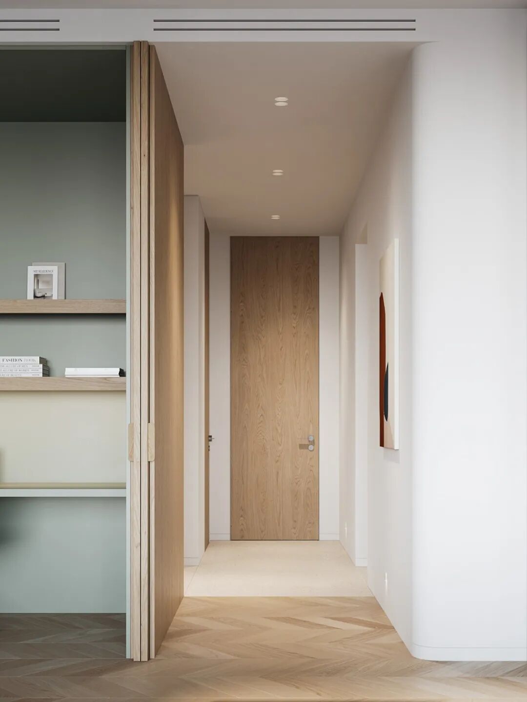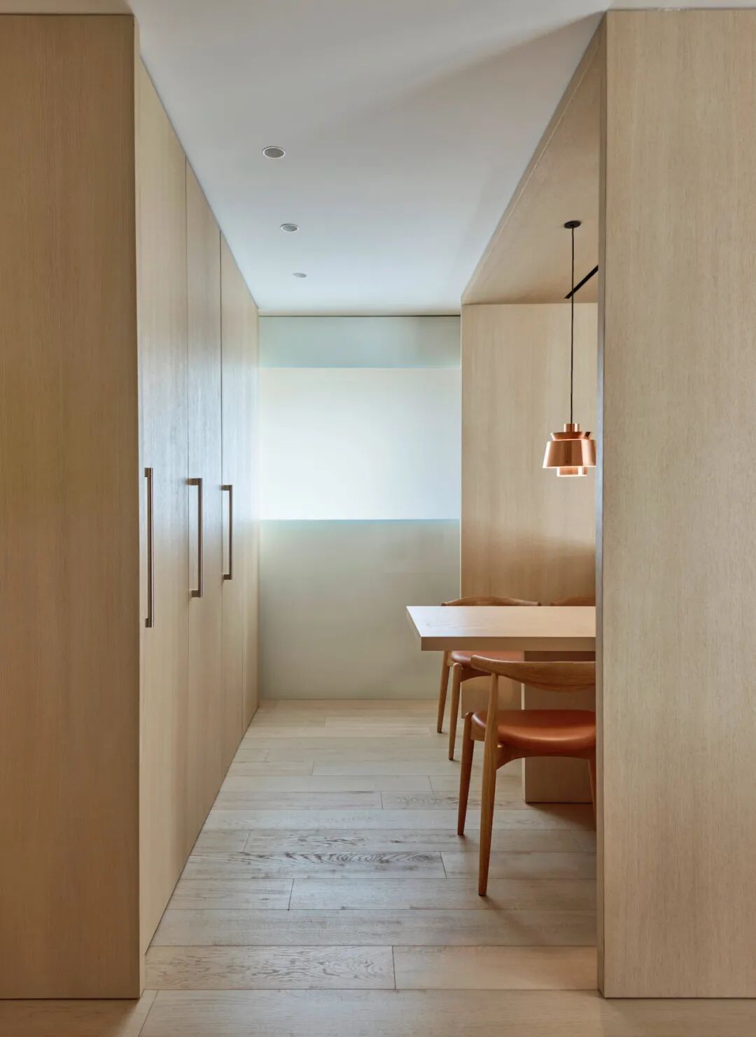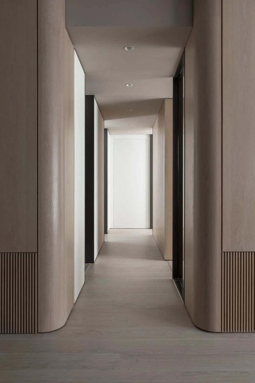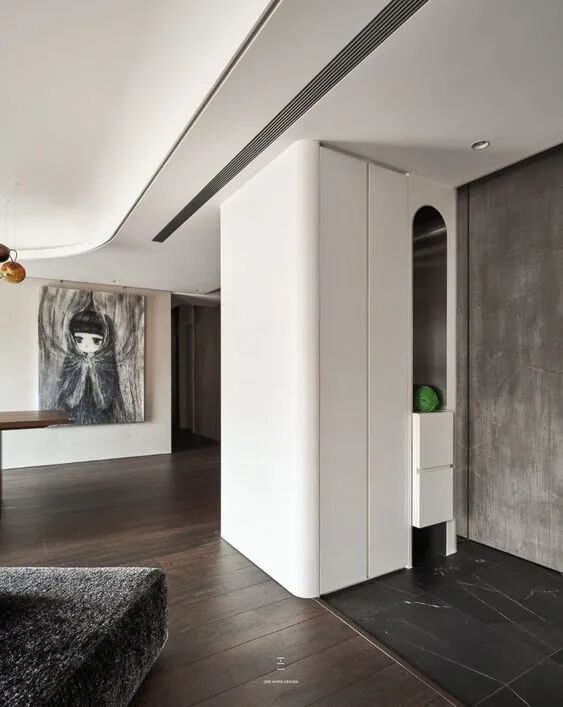 极简主义大流行的当下,笔直简练的走廊设计自然成了很多家庭的首选,人们开始喜欢无顶角线,无踢脚线,甚至无门把手设计,“少即是多”成了最重要的设计哲学,好的走廊的设计实现,与当下施工工艺快速进步,有着紧密的关联。