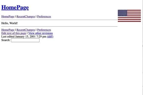 威尔士说:“你所看到的就是我设置这个软件时维基百科的样子,这个单独的页面将在网络上公开发布,就像维基百科本身一样,任何人都可以查看和编辑它。但所有更改将在五分钟后恢复,并返回到原始状态:单个编辑内容为‘Hello, World!’ ,遵循长久以来的编程传统。”