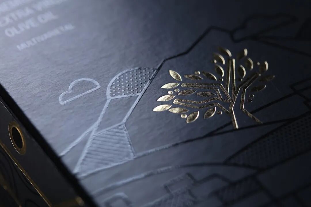 Mavroeidis家族与我联系,为他们的新橄榄油设计一切所需。我面临的挑战是保持我的风格,因为这是他们首先与我联系的原因,但同时要设法使一切看起来高级和奢侈。我们首先从标志设计开始,一旦我们对其满意,我就开始设计瓶子。最后是盒子的设计。通过保持我的几何波普艺术风格,但主要使用黑色和金色的颜色,我们达到了我们所寻找的结果。一个优质的希腊特级初榨橄榄油的标志和包装设计。当然,我们使用的印刷方法,如黑色UV线和黑色亚光瓶上的金色细节,以及包装盒上的金箔,再加上UV,是最终的效果。