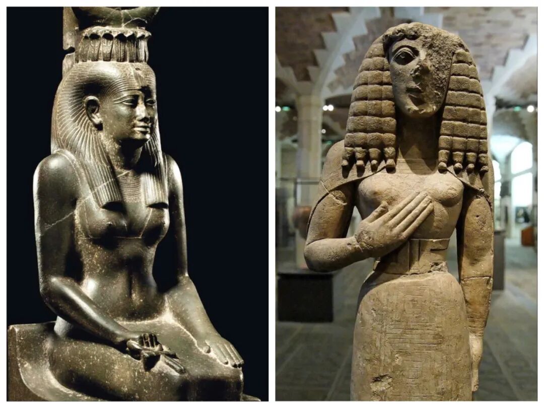 左:埃及女神伊西斯(Isis),c. 664-525 BC,硬砂岩 greywacke,高73厘米。佳士得(Christie’s)伦敦2012年10月成交价 GBP 3,681,250。