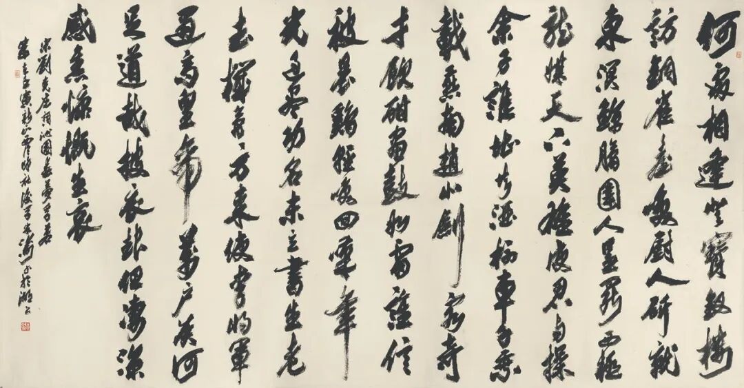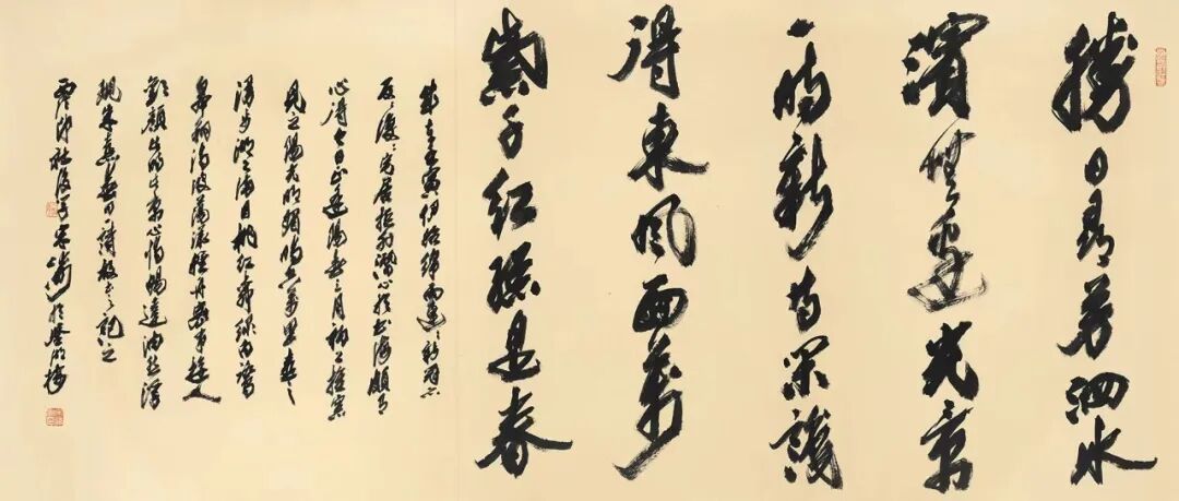 本次展出宋涛数件书法与篆刻作品。在书体上,有行书、草书、篆书、隶书;在艺术特点上,苍古中孕生机,深沉里出奇险,峻峭处见凝重,尤其是榜书作品结构严谨,气势宏大。他喜作巨幅草书,而本次捐赠的作品是历次捐赠以来尺幅最大的。其篆刻作品下刀纵横、举重若轻,既得战国之奇趣,又得汉印之气象,刀法从容稳健,疏密得当,方寸之间见天地,细微之处有乾坤。本次展览展出的10方印章和总计372.5平尺的书法作品在展览结束后将全部捐赠西泠印社美术馆收藏,充分体现出宋涛先生作为艺术家的社会担当和对西泠印社的深情厚谊。