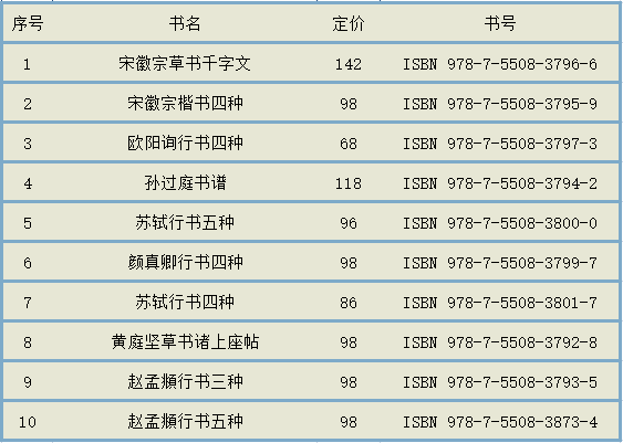 本次精选的10种墨迹目录如下