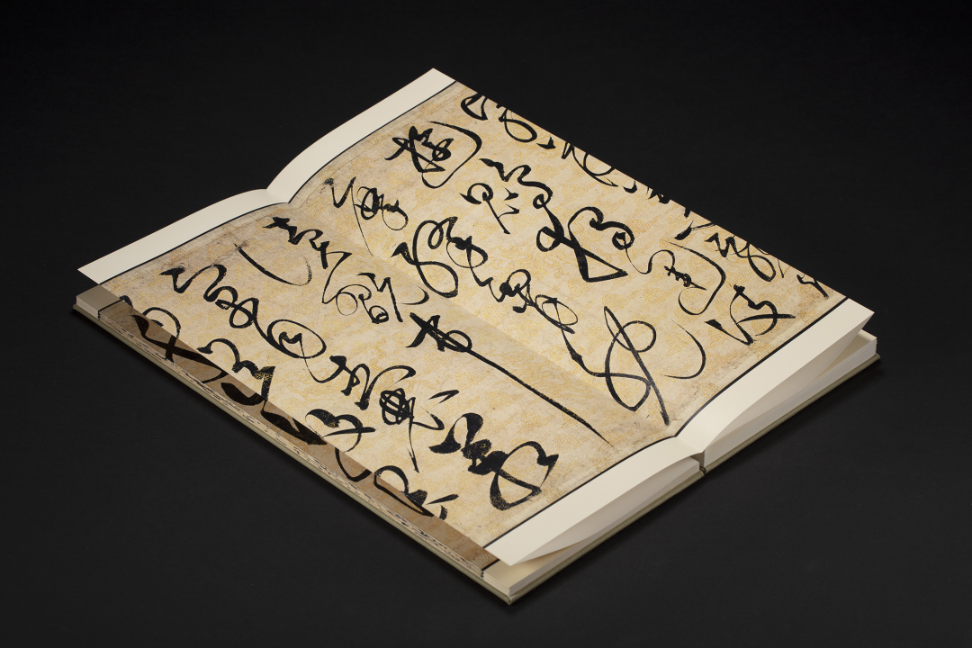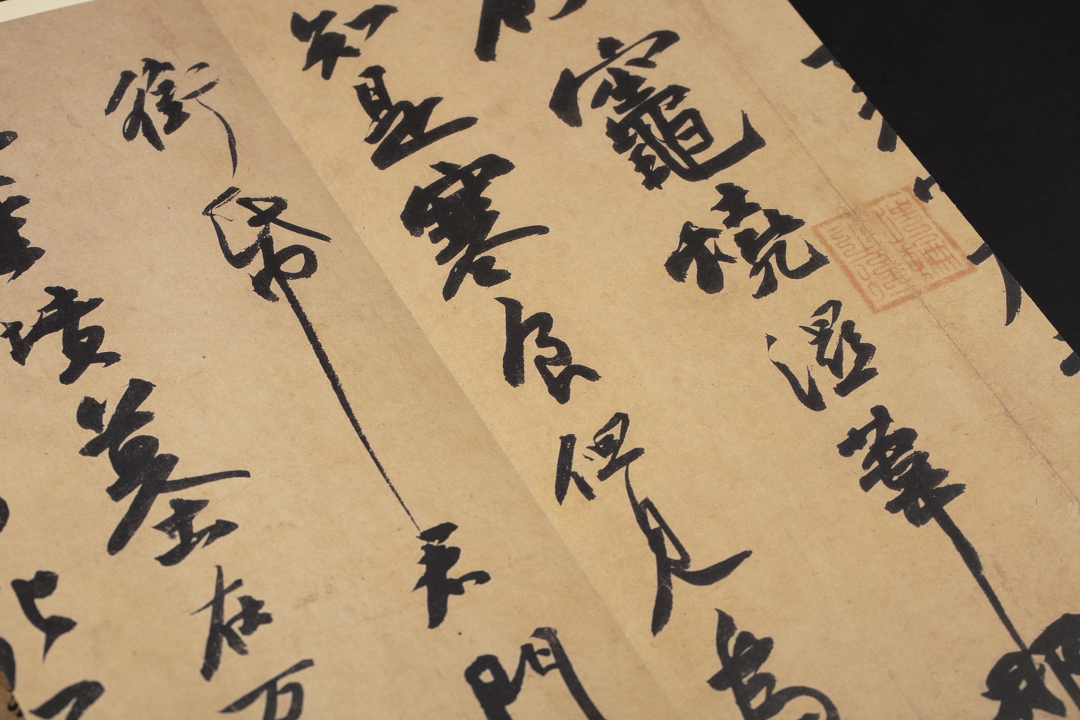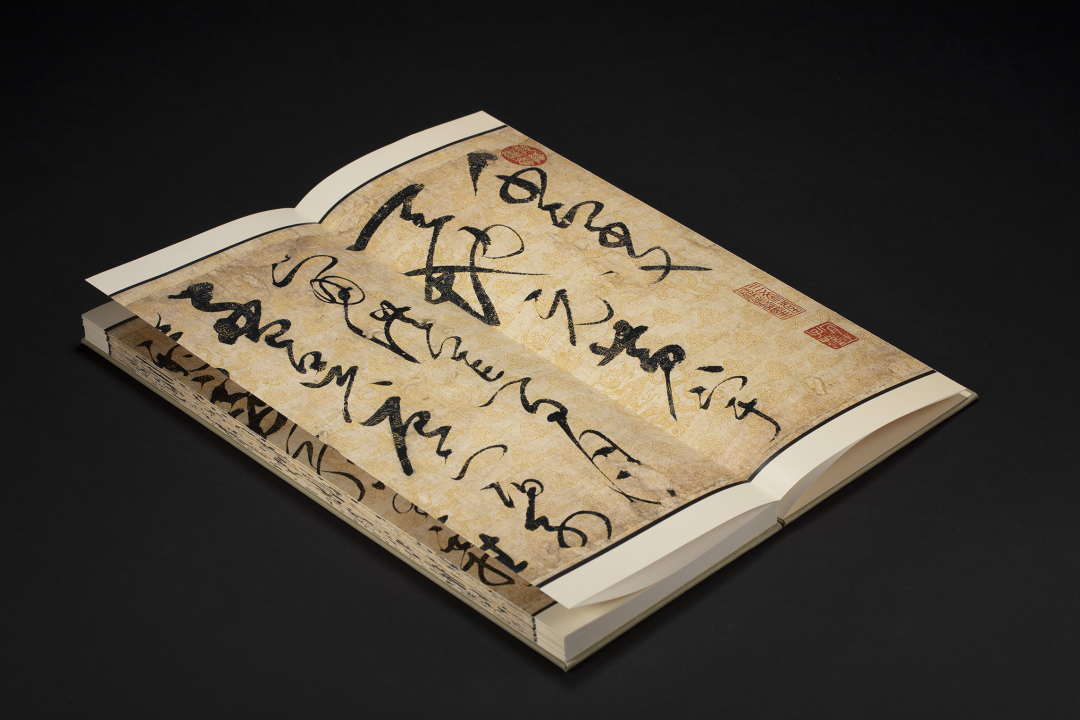 《草书千字文》作于北宋宣和四年(一一二二),纵三五点一厘米,横一一七二厘米。该作书写的内容为南朝大臣周兴嗣创作的《千字文》,全文书于长三余丈的整幅描金云龙笺之上,底纹的精工图案,是由宫中画师就纸面一笔笔描绘而出,与徽宗的墨宝相得益彰,共同成就了这篇空前绝后的旷世杰作,被誉为“天下一人绝世墨宝”