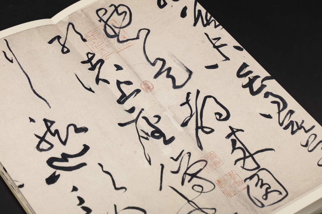 放逸纵横,飞舞跌宕,是山谷草书的一大亮点。他曾自称:“观长年荡桨,群丁拨棹,乃觉少进,意之所到。辄能用笔。”(山谷题跋)其长枪大戟的线条无疑是长年观群丁拨棹的结果。为了突出这种效果,黄庭坚在不遗余力地施展纵长笔画的同时,有意收敛压缩较短的笔画,化横为点,使其与较长的笔画形成鲜明的对比,造成强烈的视觉冲击,达到或飞舞飘扬,或纷纭错落的艺术效果。