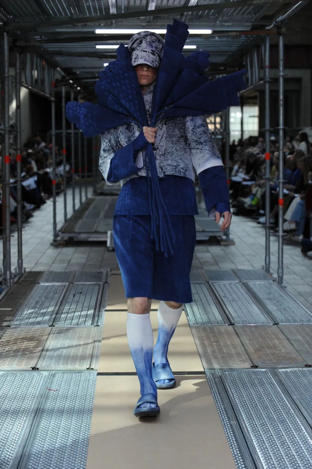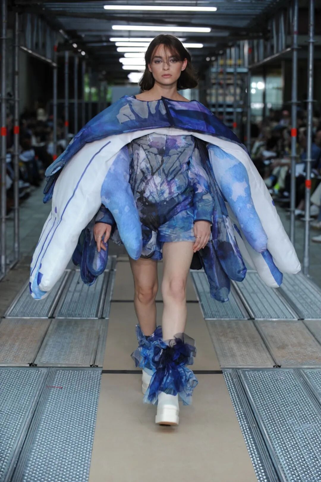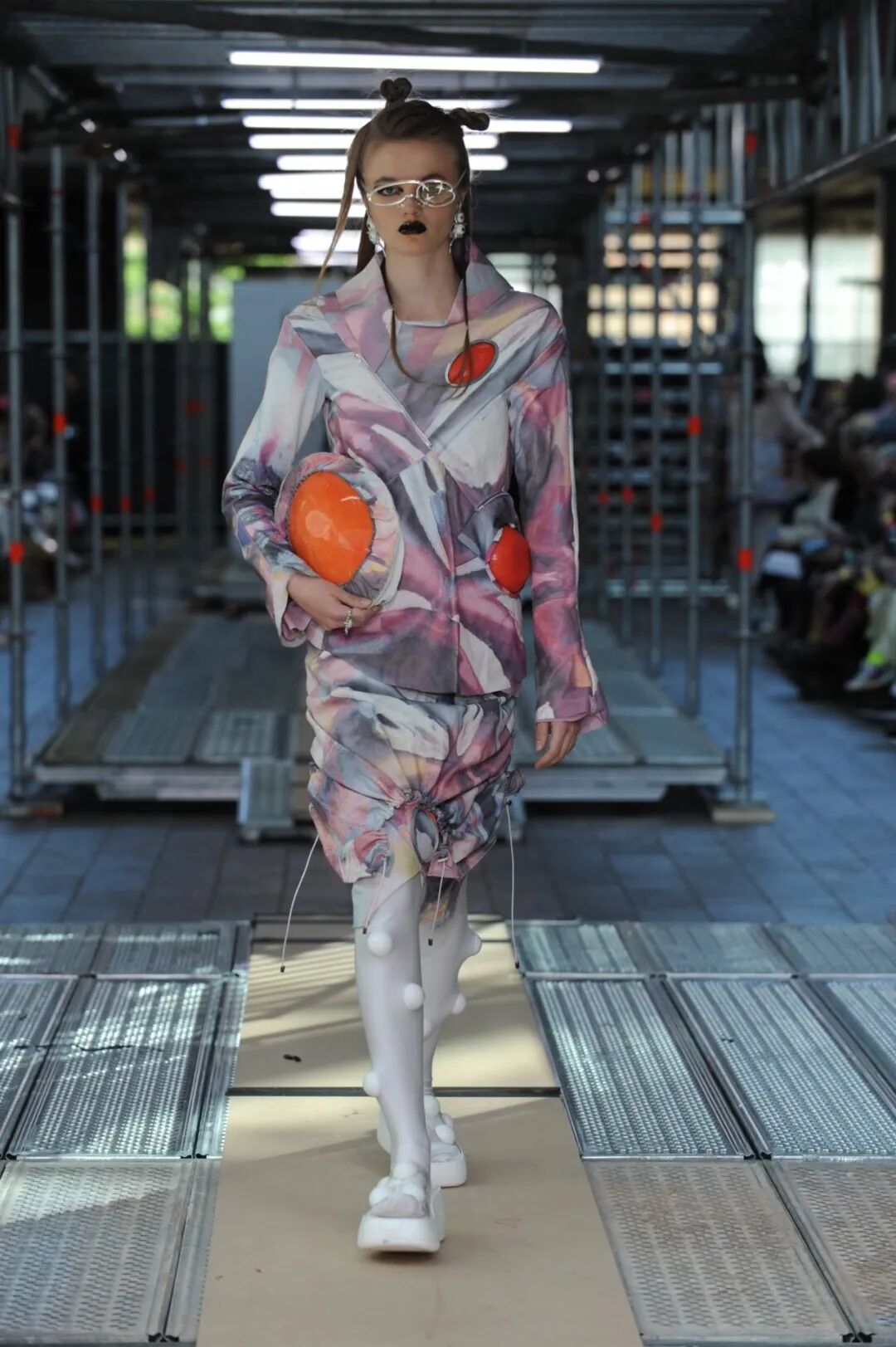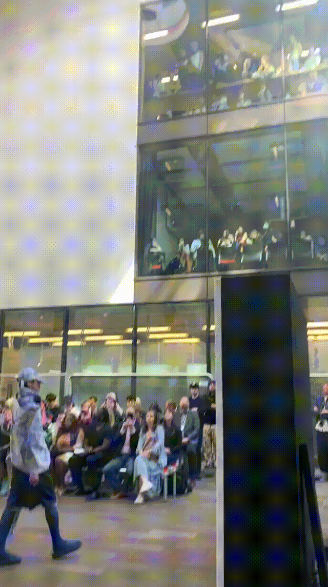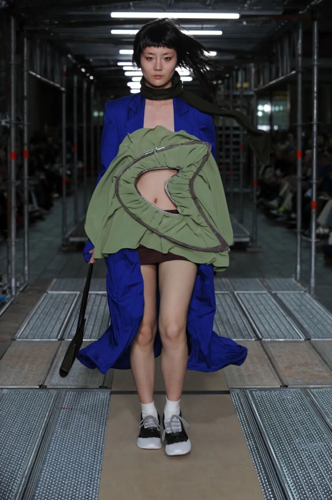 2022年5月24日的晚上,中央圣马丁时装课程的所有115名学生用两层楼的上下两道runway来展示了他们毕业设计中的三套look。