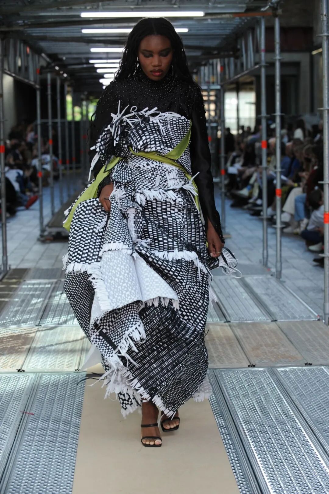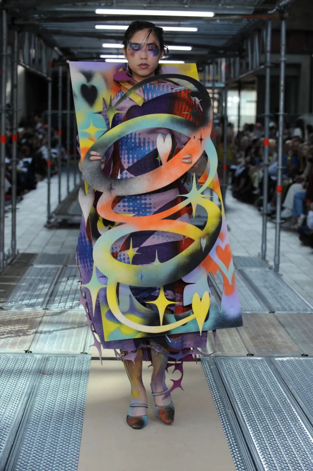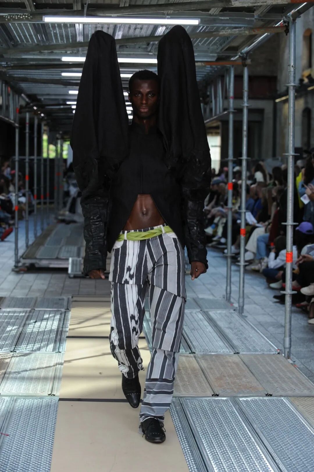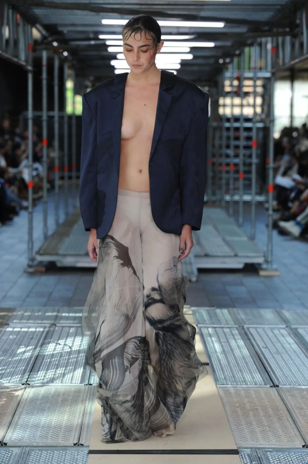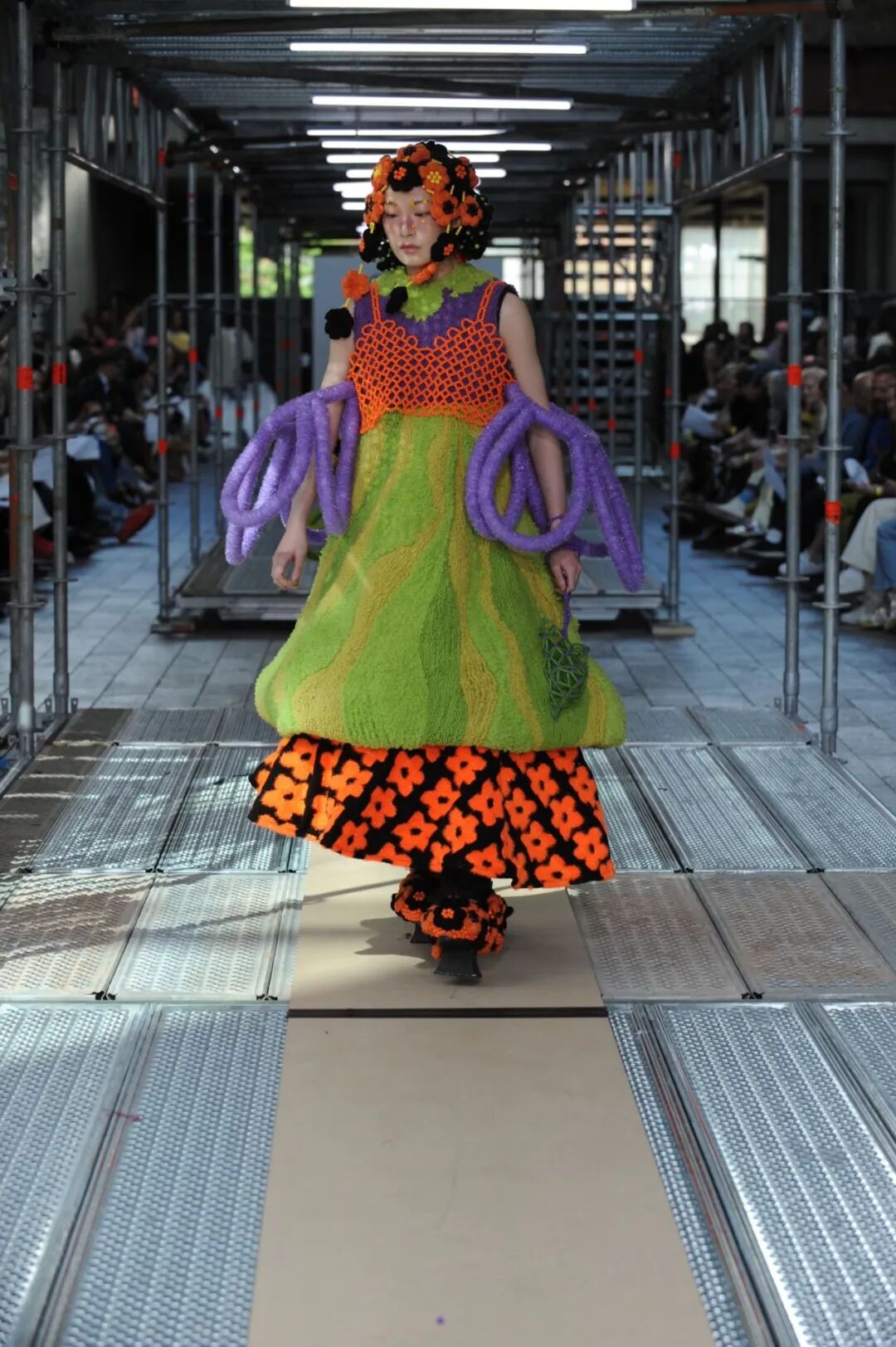2022年5月24日的晚上,中央圣马丁时装课程的所有115名学生用两层楼的上下两道runway来展示了他们毕业设计中的三套look。