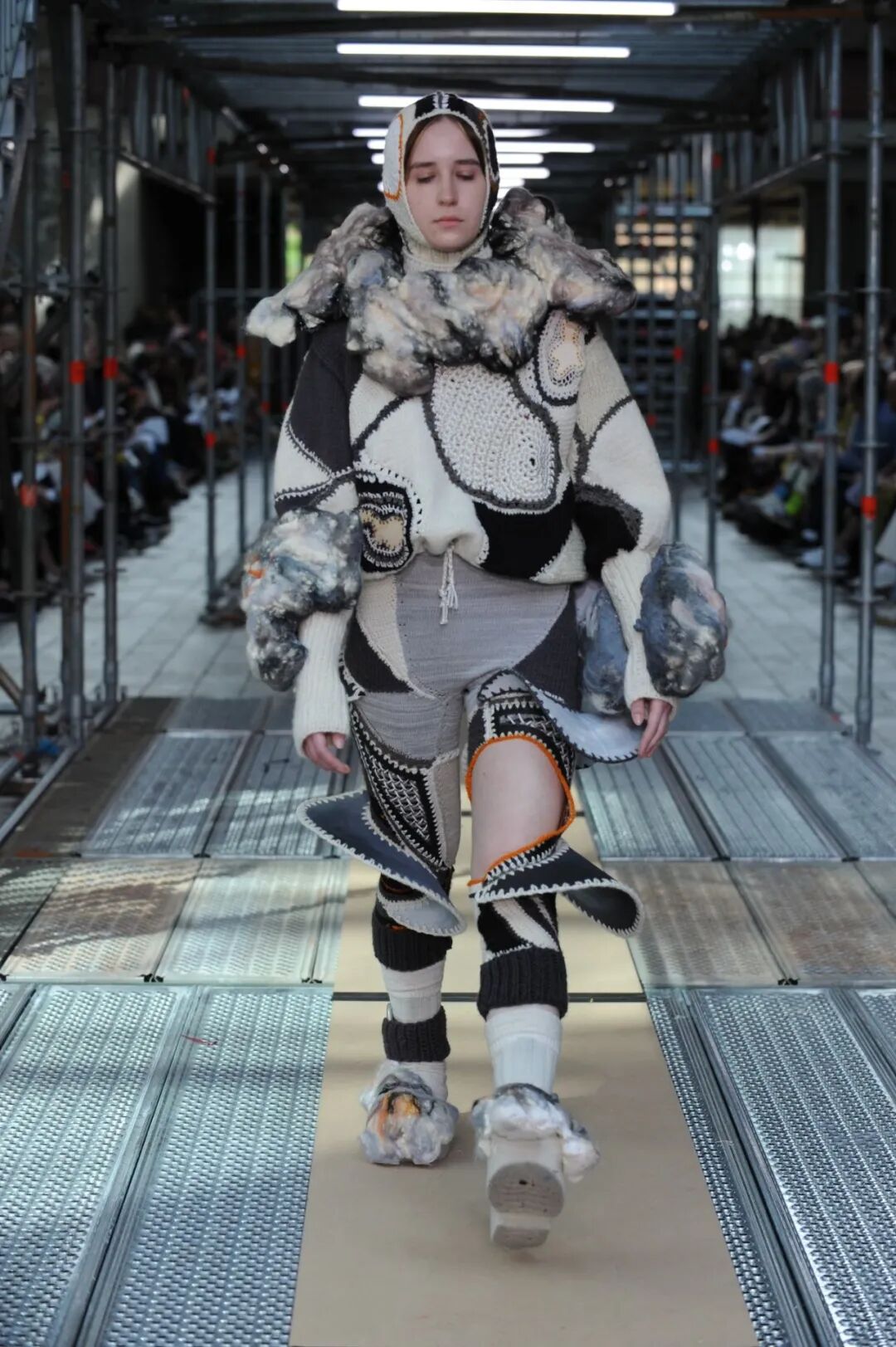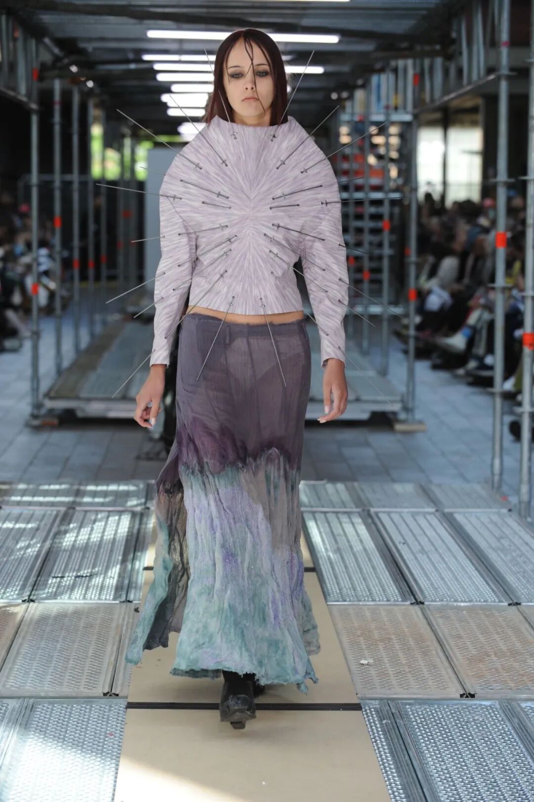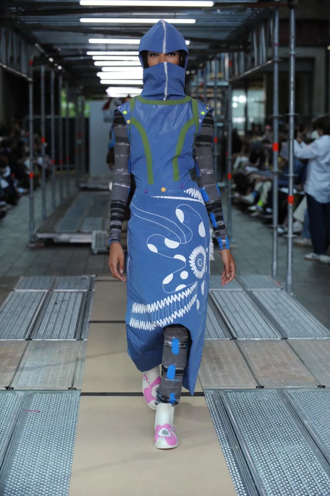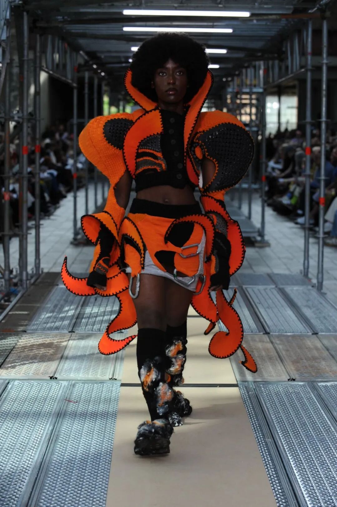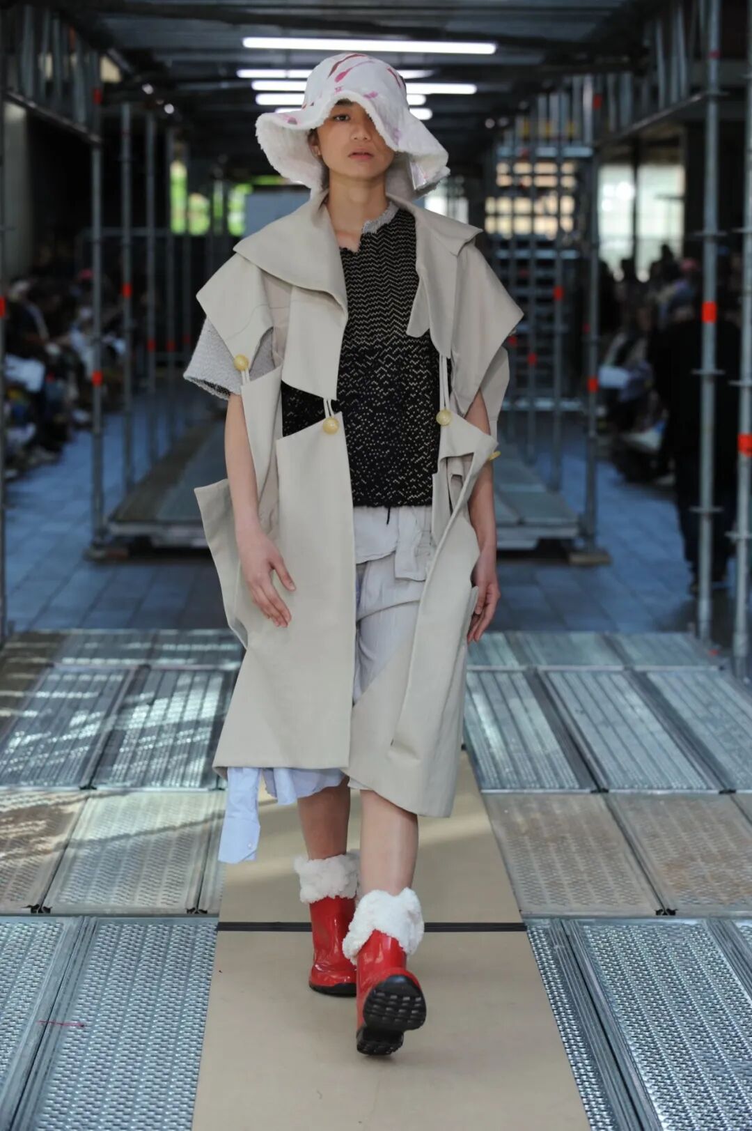 2022年5月24日的晚上,中央圣马丁时装课程的所有115名学生用两层楼的上下两道runway来展示了他们毕业设计中的三套look。