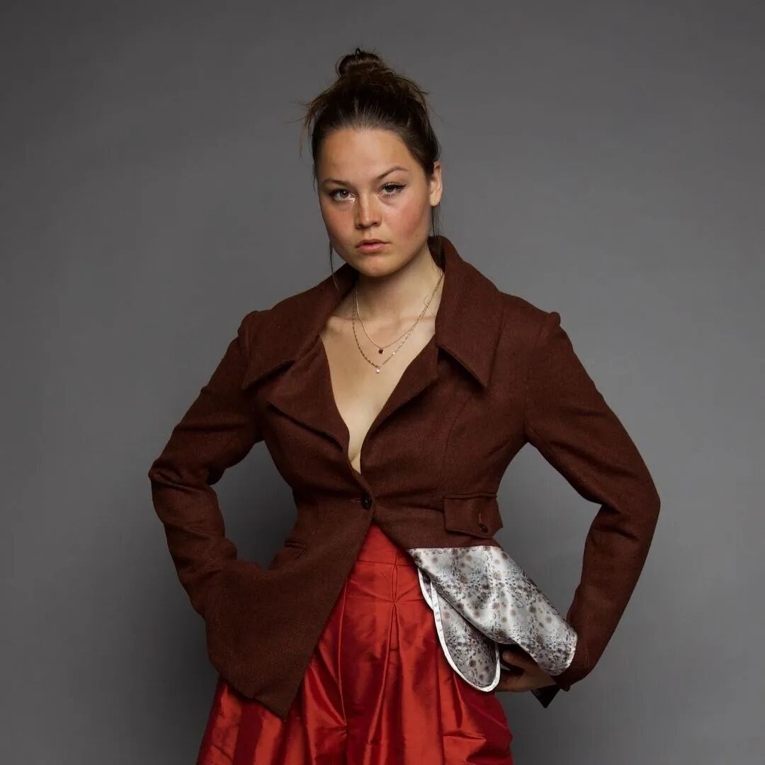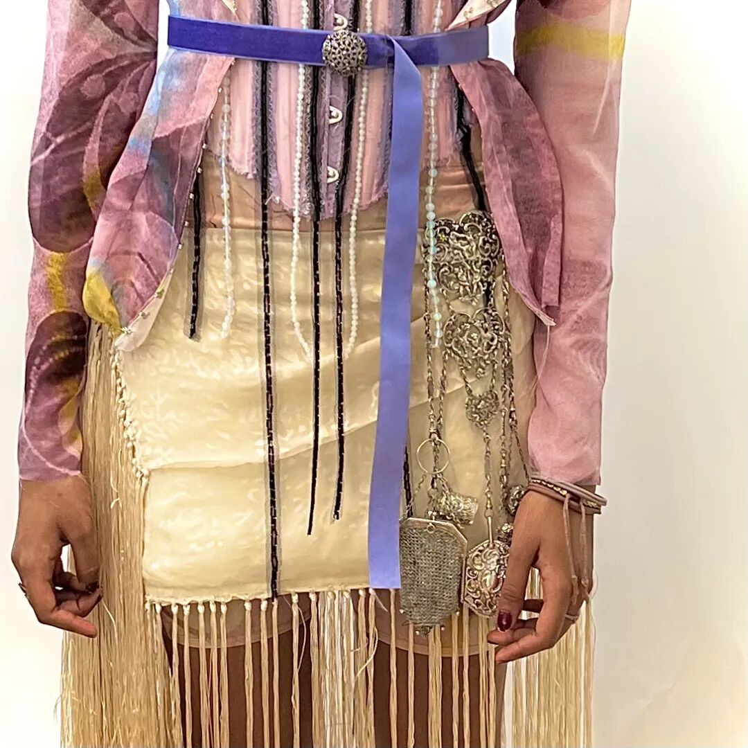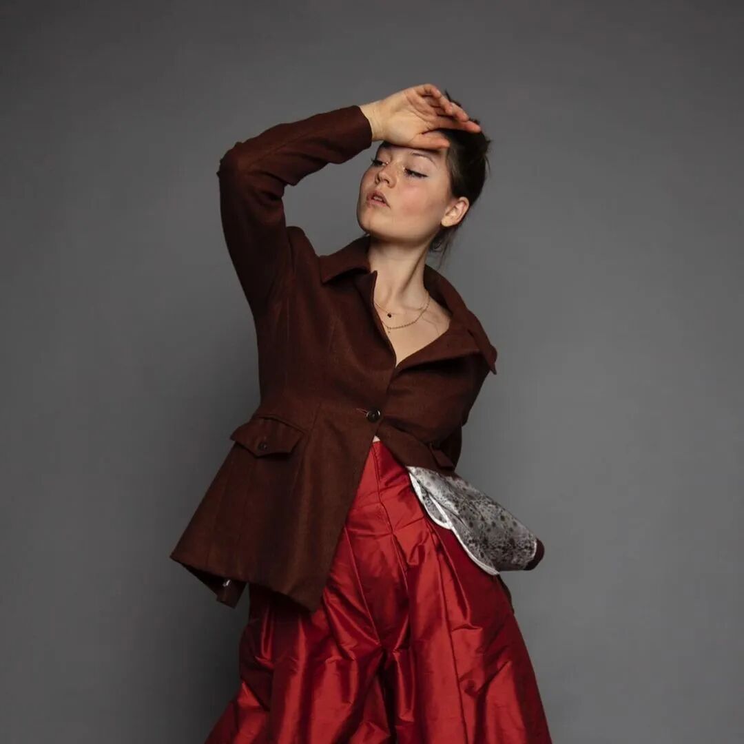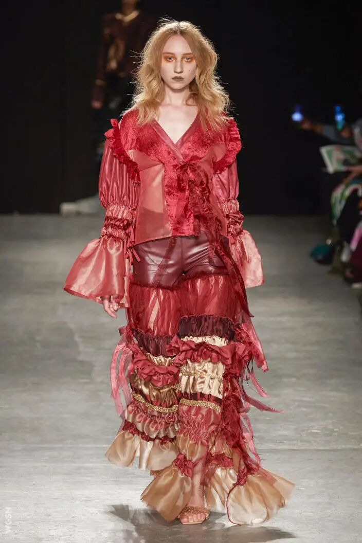在KNWLS实习后,她已经能够将现代元素运用到她的设计中,将发现的复古材料重新利用到一个现代女性的世界中。她对细节有敏锐的洞察力,通过贴花和点缀来软化结构化的服装。