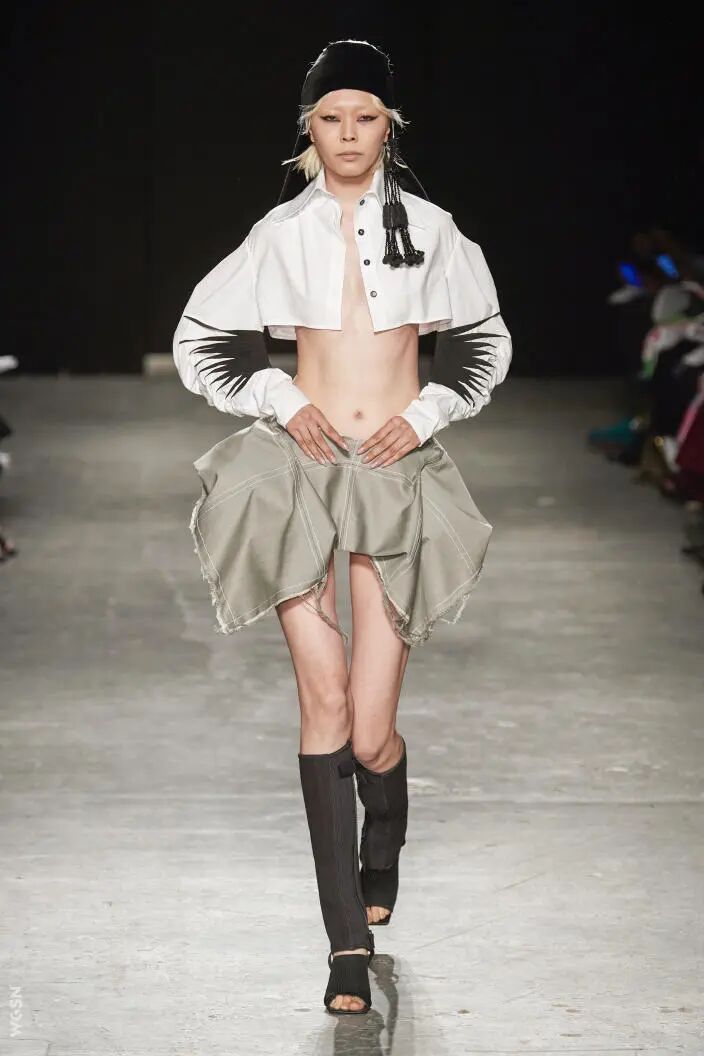 出生于伦敦,父母是韩国/中国-马来西亚人,时装设计师Grace Kwon在她的作品中探索和庆祝她的跨文化身份。她的首个系列Godspeed始于哀悼时期,其灵感来自于中国佛教葬礼上燃烧的香纸、维多利亚时代的波浪形丧服和韩国传统死亡仪式。现代、大胆、流畅的轮廓和高贵的色调形成了戏剧性的、令人垂涎的作品,为生命的承诺而欢欣鼓舞。