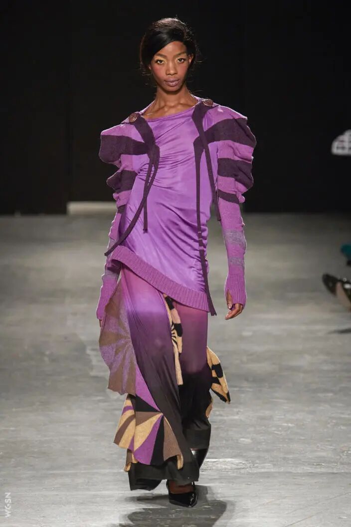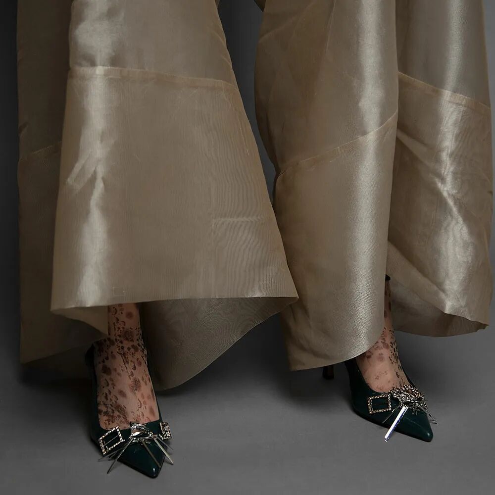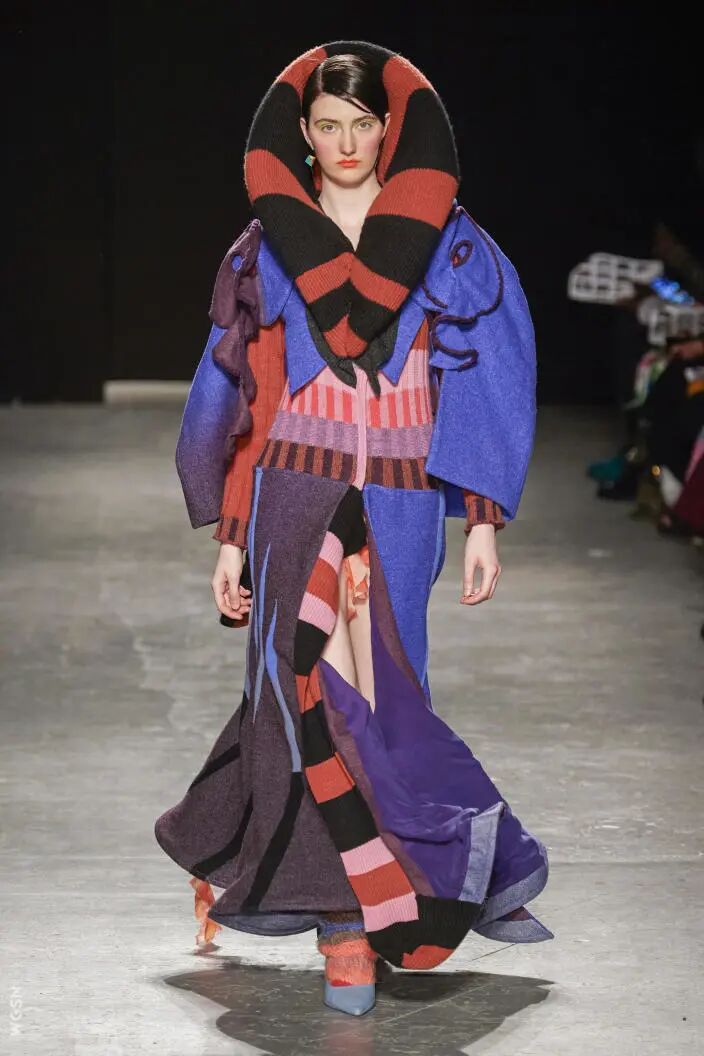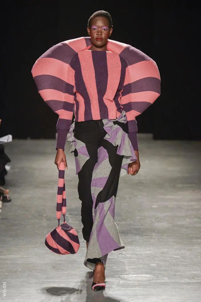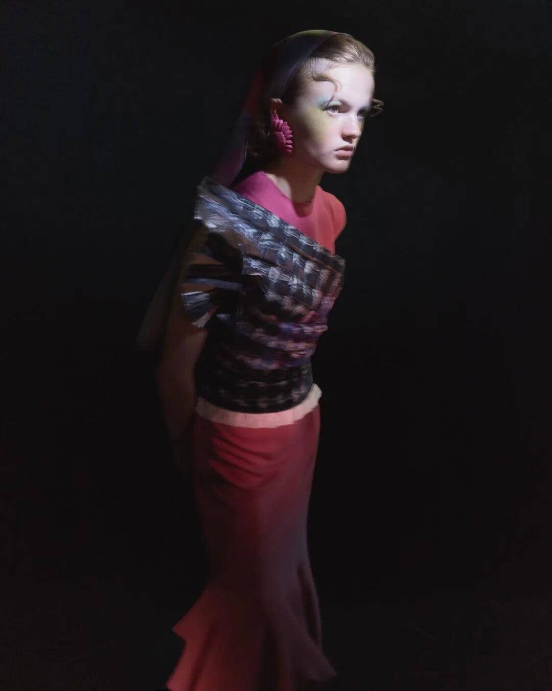 18世纪绅士裁缝的传统元素,与悬垂感十足的面料还有紧身胸衣共存,Eleanor创造了女性化的现代廓形,赋予穿着者以自主和权威。