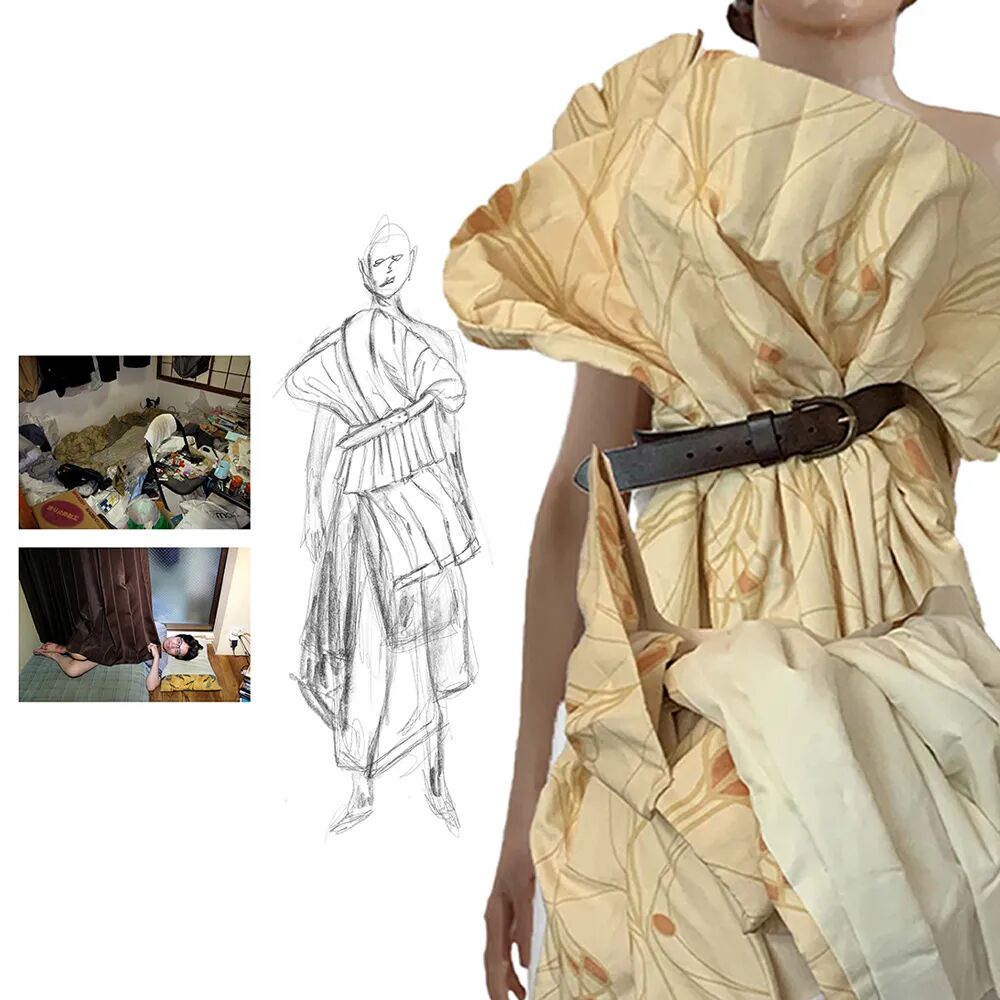 Emma在实习期间为Maison Margiela实习,这启发了她在她的系列中更加强调故事性,并在3D方面进行更多尝试。她喜欢使用广泛的技术,从不同的织物操作到3D打印或激光切割。她经常在她的作品中混合使用传统和现代技术。考虑到可持续的设计实践,毕业设计系列几乎完全由来自当地回收中心和时装公司捐赠的二手和回收材料制成。