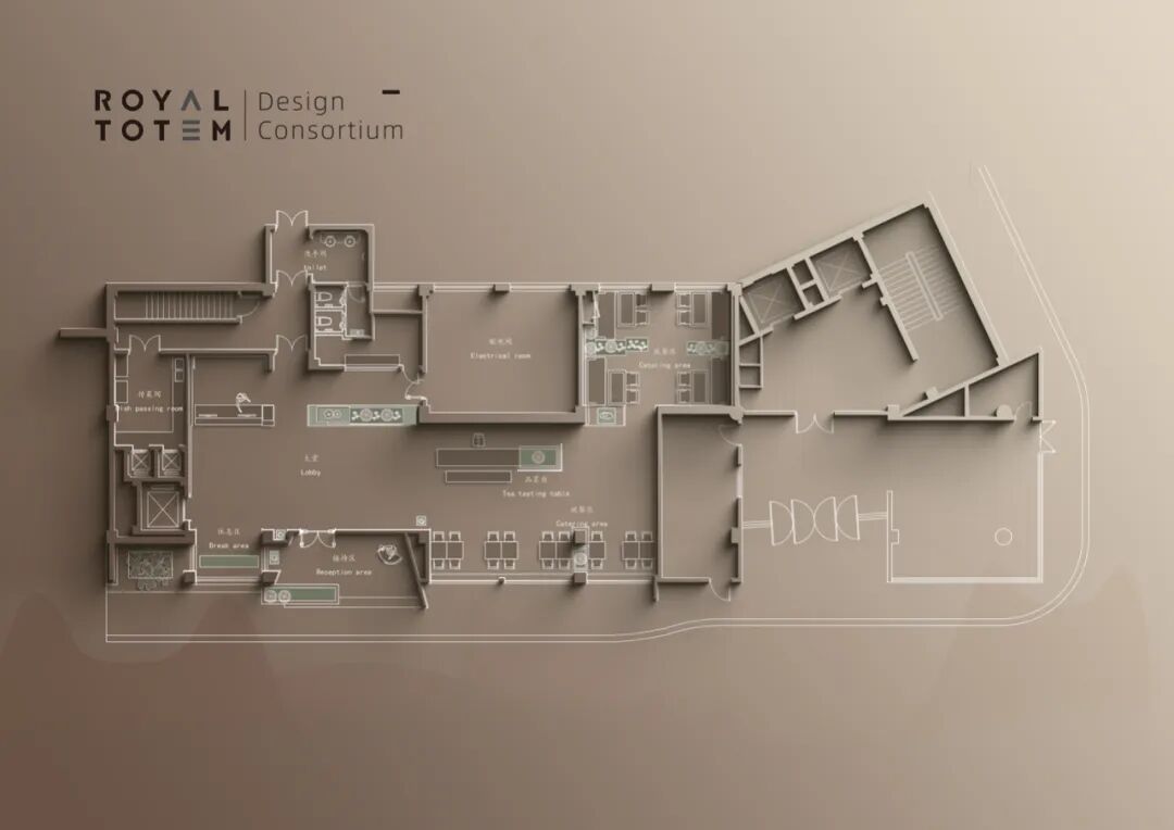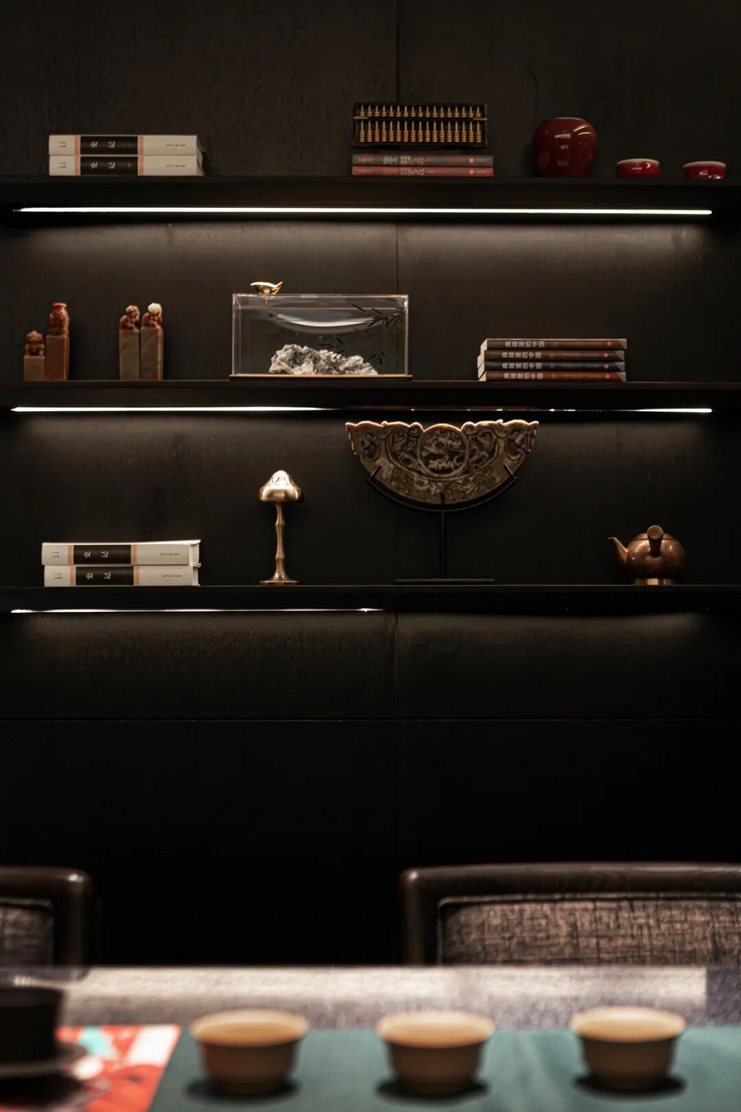 设计师通过“抽象”的创作手法,在空间与场域中将意念与姿态提纯;墨色的衬托,朱砂似“鸿蒙”般呈现,这就是“东方之野,日出之处”;亦是中华文脉的繁衍与传承。