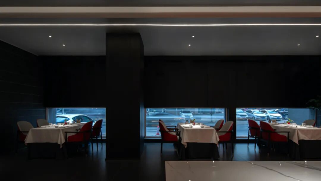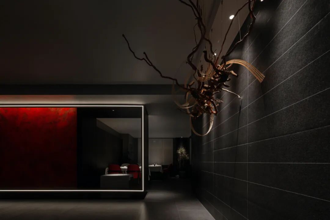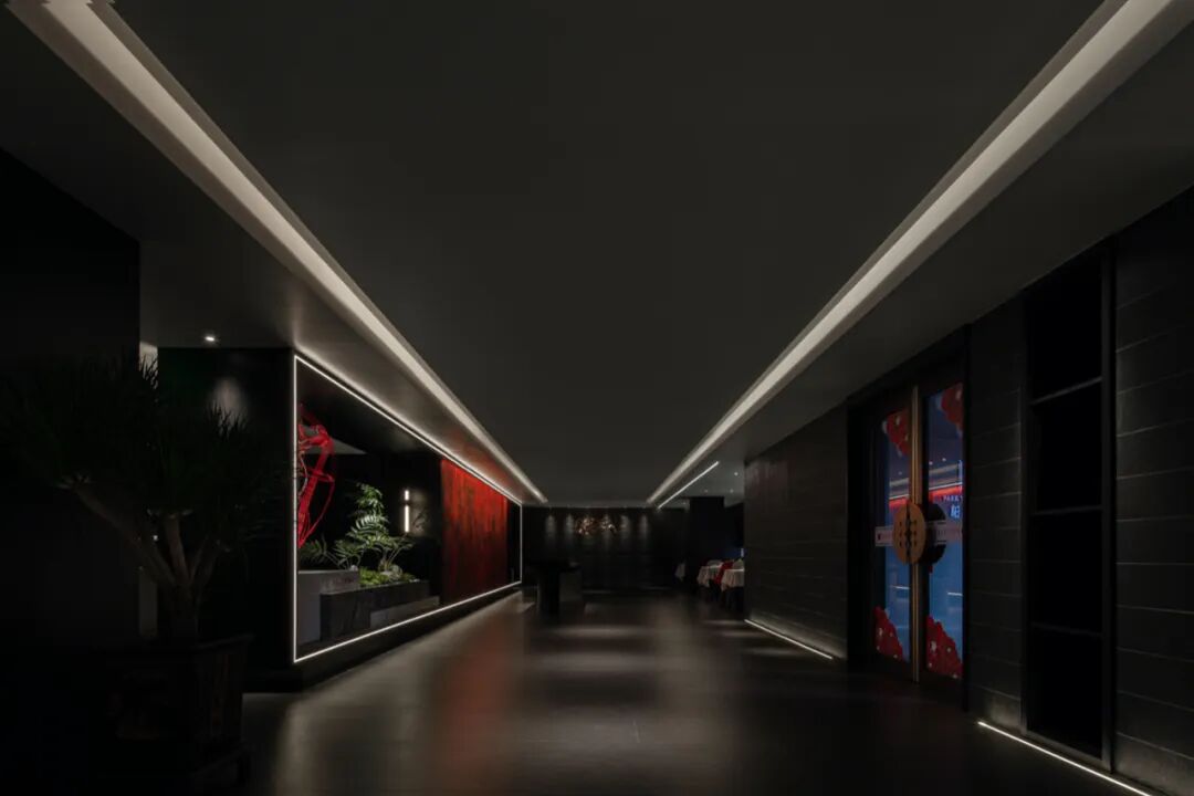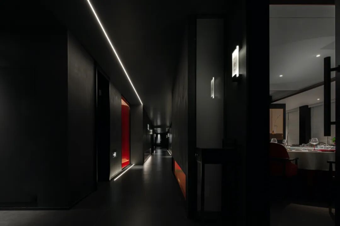 师法古人“藏与留”的智慧,或隐或藏的“长廊”,朱砂与墨色、长廊与廊柱形成节奏关系,让食客从空间尺度上的变化,感知逐渐深入空间的探索乐趣。