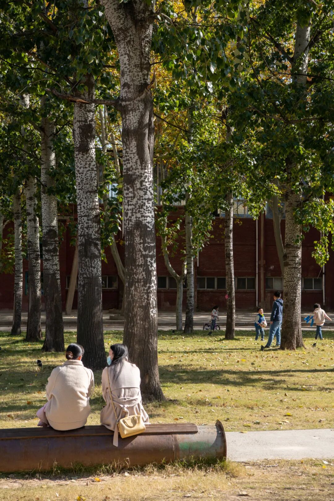 △ 老人带孩子在砂轮花园休息